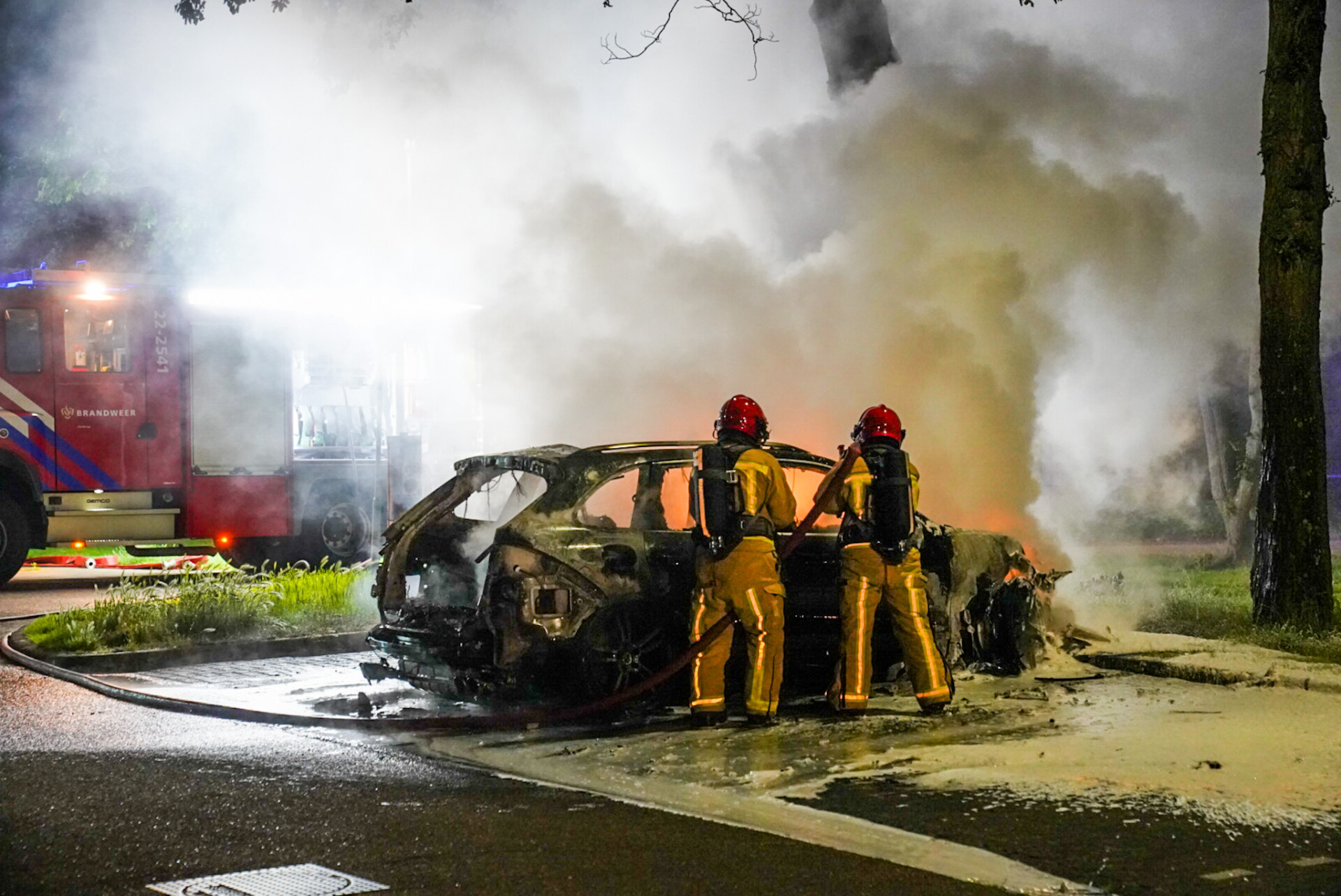 De politie doet onderzoek naar de autobrand, brandstichting wordt niet uitgesloten.