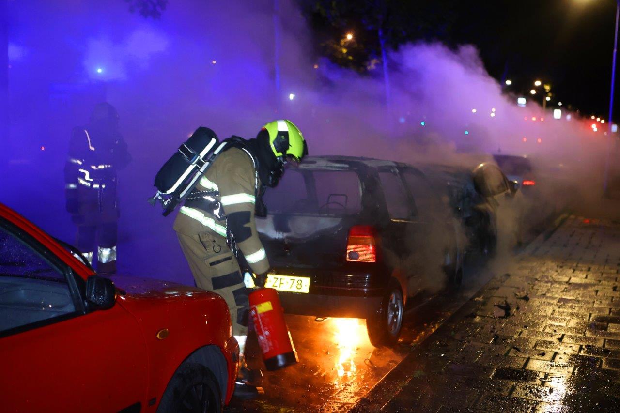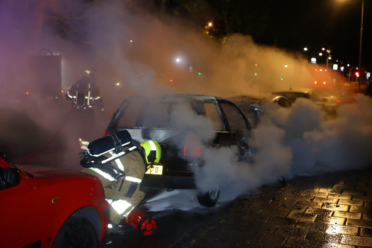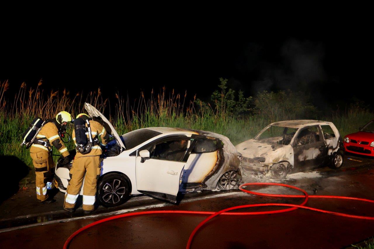 Een derde voertuig raakte door de brand beschadigd. De politie heeft de eigenaren in kennis gesteld en heeft de brand in onderzoek. De weg was tijdens de bluswerkzaamheden afgesloten.