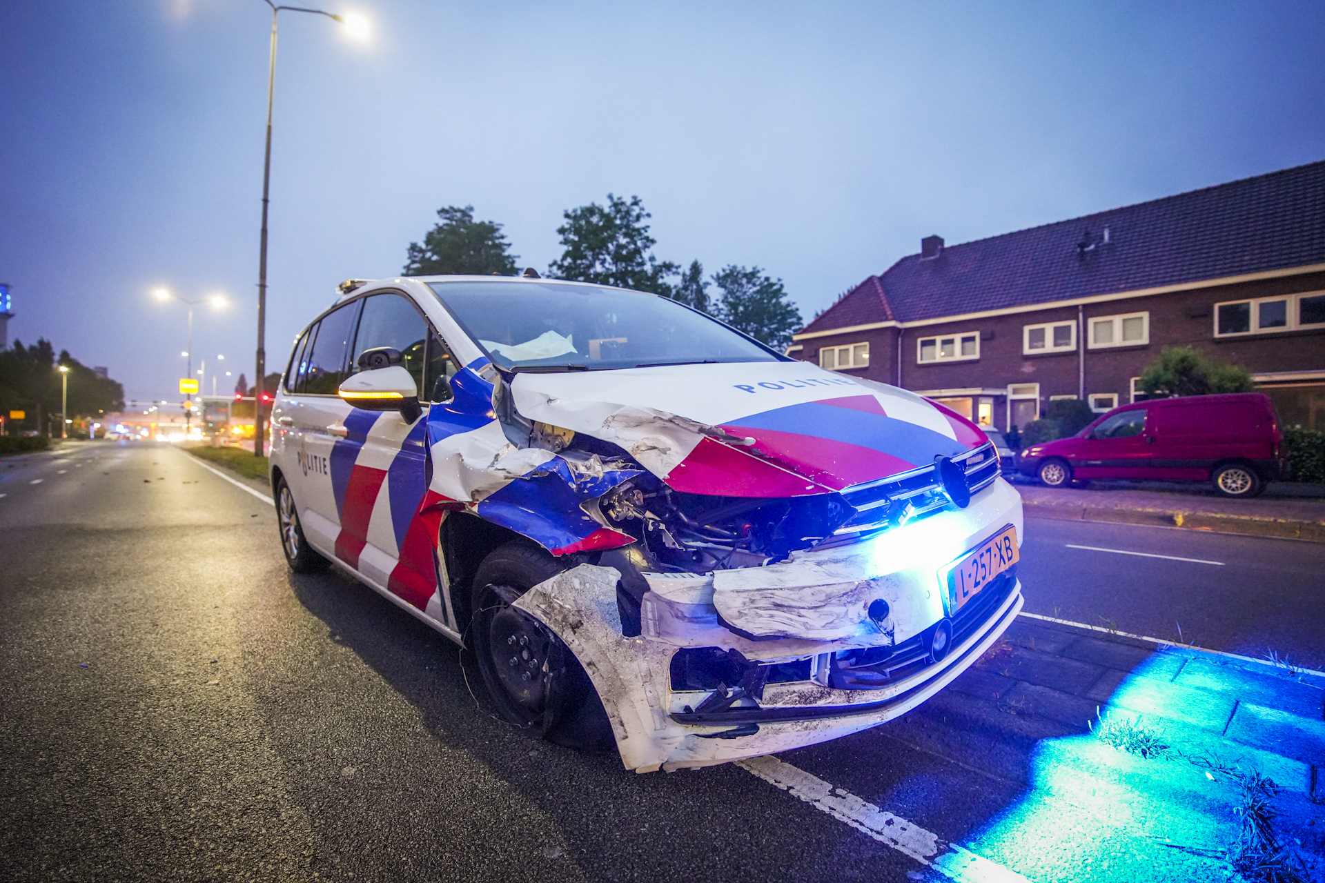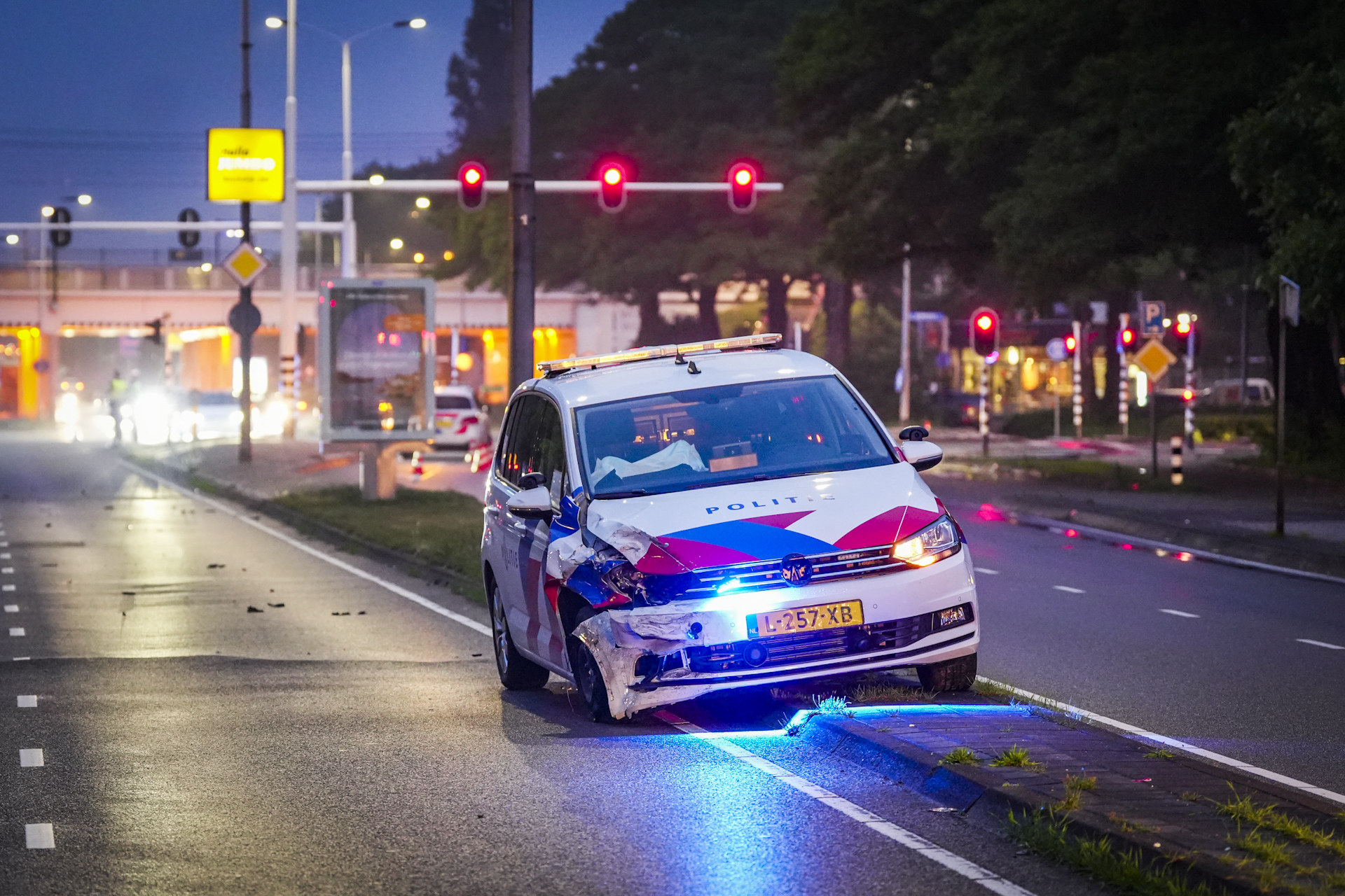 De politiewagen kwam op de kruising met de Marconilaan en de Antony van Leeuwenhoeklaan in botsing met een personenauto die de kruising overstak.