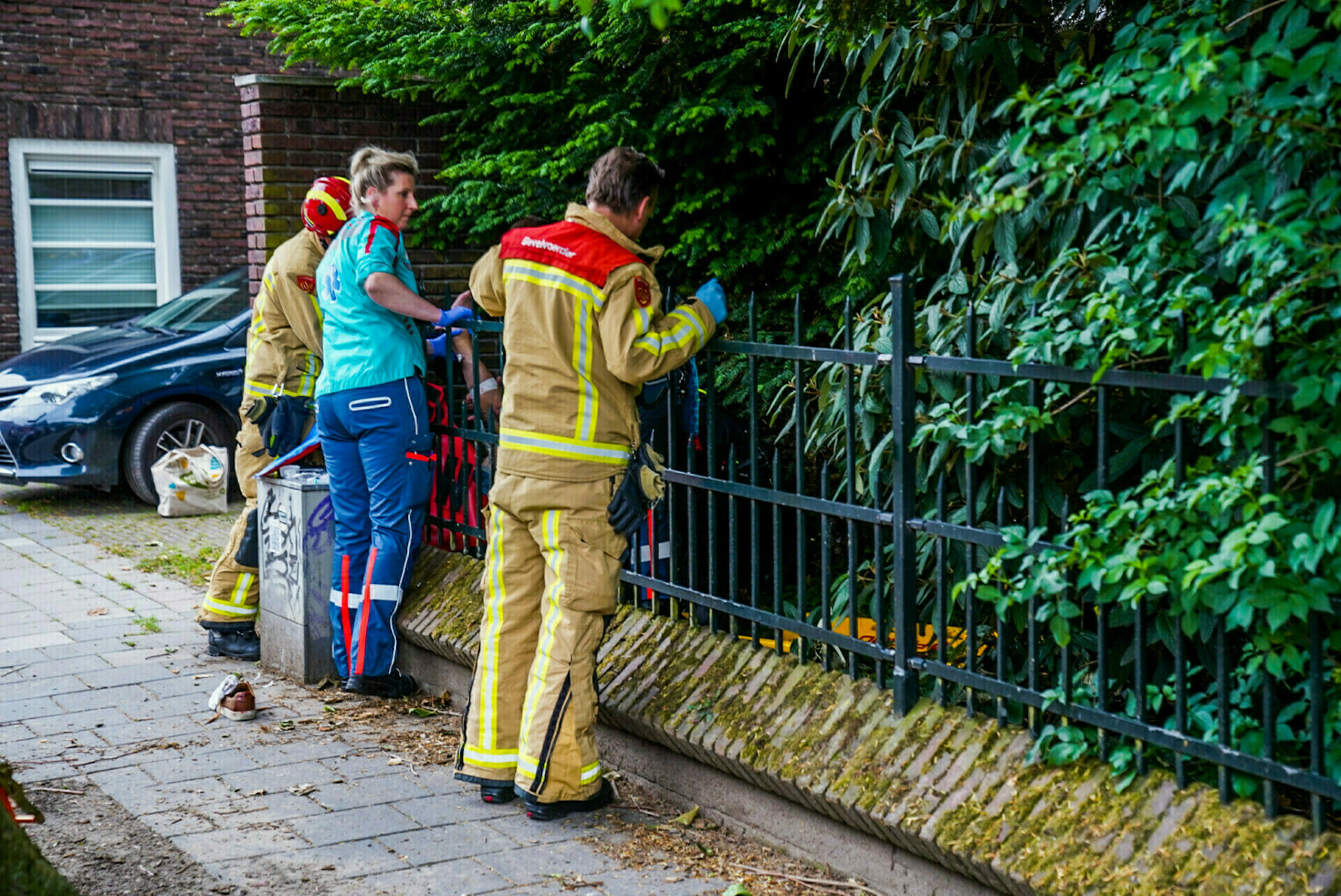 De brandweer een deel van het hek met een hydrolische schaar losgeknipt, waarna de man met een stuk hekwerk in zijn been naar het ziekenhuis overgebracht. Daar zal hij verder geholpen te worden.