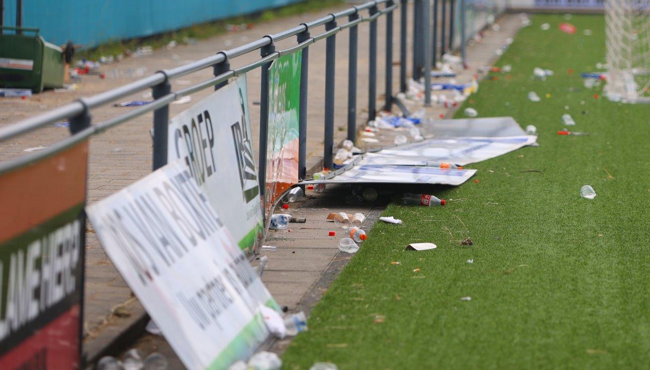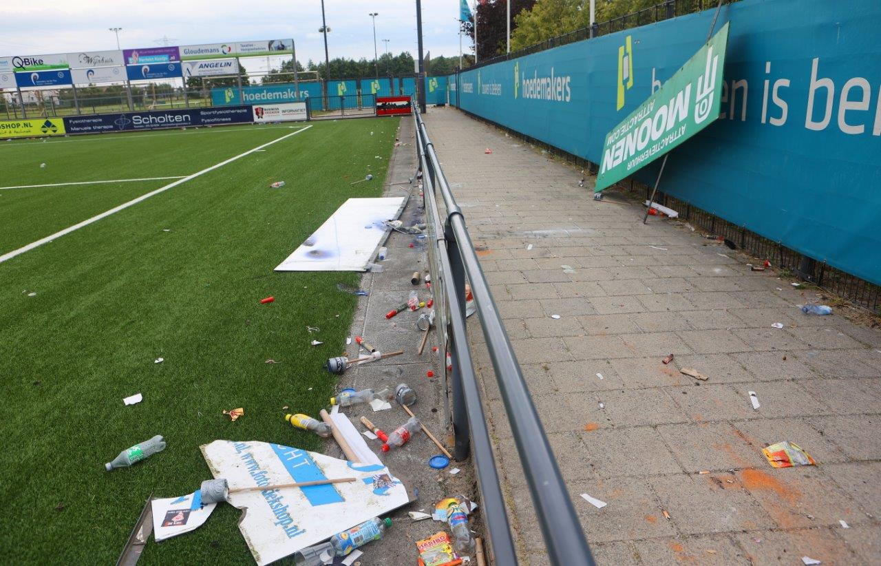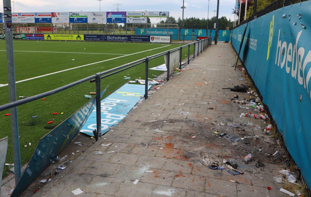 Op het sportcomplex waren slechts twee beveiligers en vrijwilligers aanwezig. Daarom kwam de politie met veel eenheden ter plaatse om de boel te sussen. De supporters zijn naar de bussen geleid waarna de rust terugkeerde. Er zijn geen aanhoudingen verricht. De wedstrijd is wel uitgespeeld. Na het nemen van strafschoppen promoveerde vv Nieuwenhoorn.