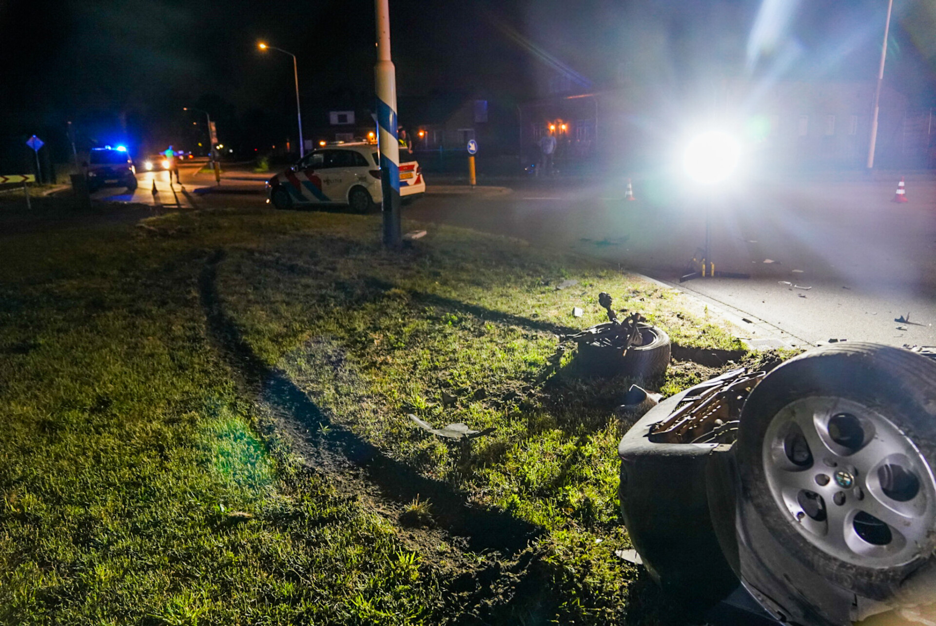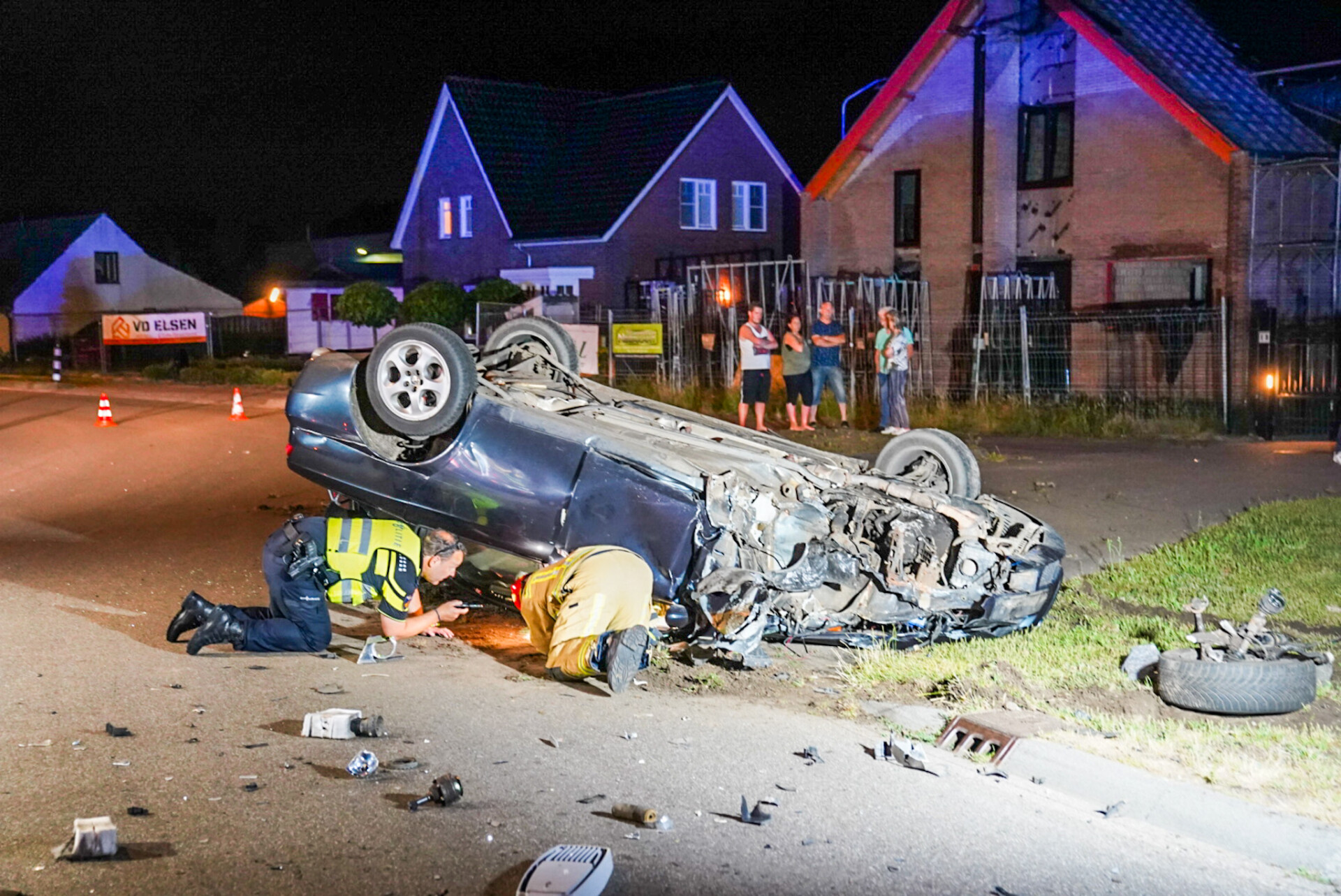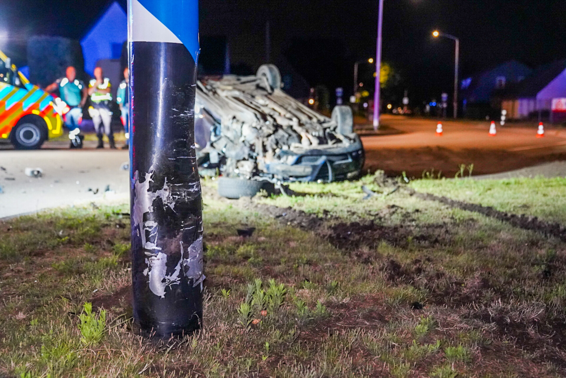 De auto kwam uit de richting van Deurne en had de bocht op hoge snelheid gemist. Vervolgens klapte de auto tegen een paal waarna het voertuig op zijn dak kwam te liggen.