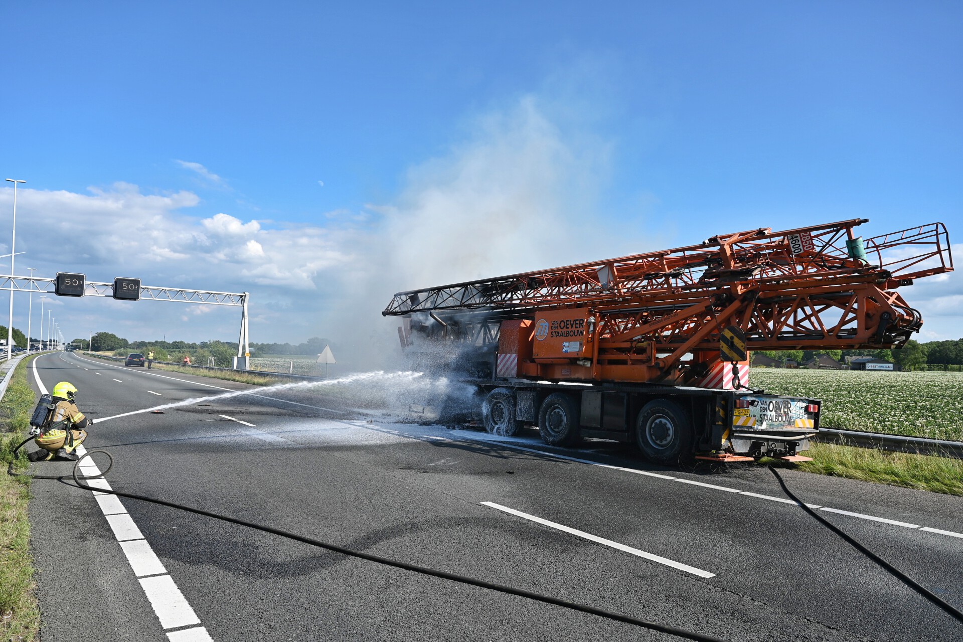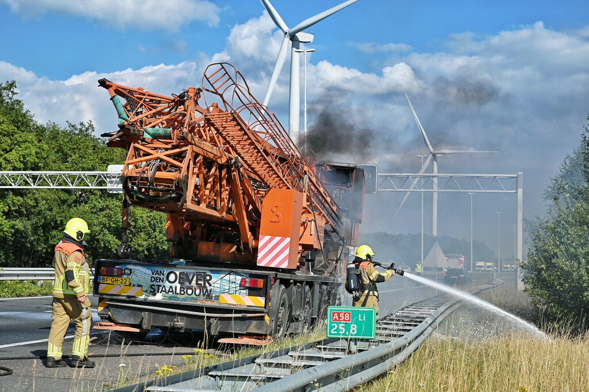 MOERGESTEL – Op de A58 bij Moergestel is vrijdagmiddag een hijskraan in brand gevlogen. De snelweg vanuit Breda in de richting van Eindhoven heeft lange tijd dichtgezeten