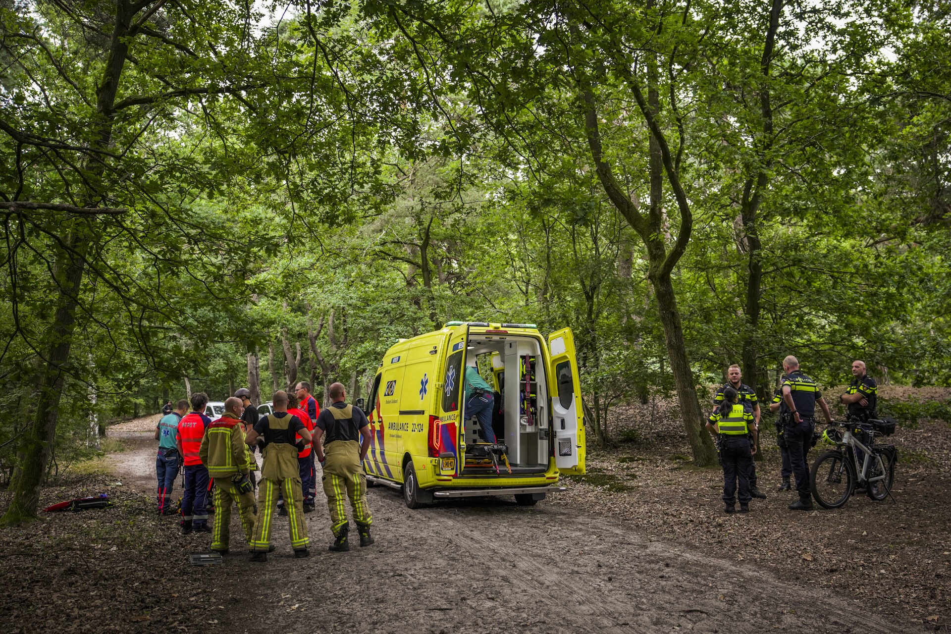 De politie was ook in het bos aanwezig. Ze hielden wandelaars en mountainbikers op afstand van de vertrekkende traumahelikopter. Hierna keerde de rust weer terug in het bos.