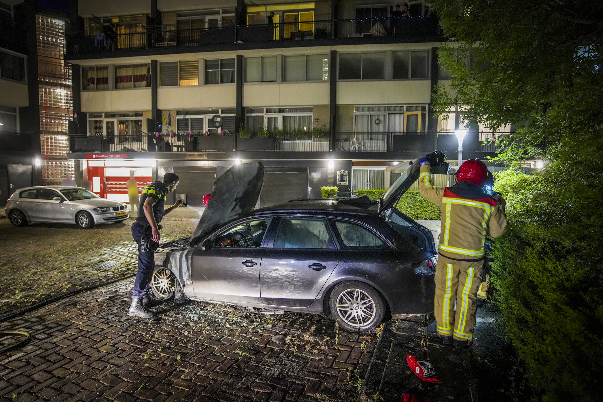 Omwonenden verklaren bij de politie dat ze iemand hebben zien weg rennen. De brandweer was snel ter plaatse en heeft het vuur geblust.