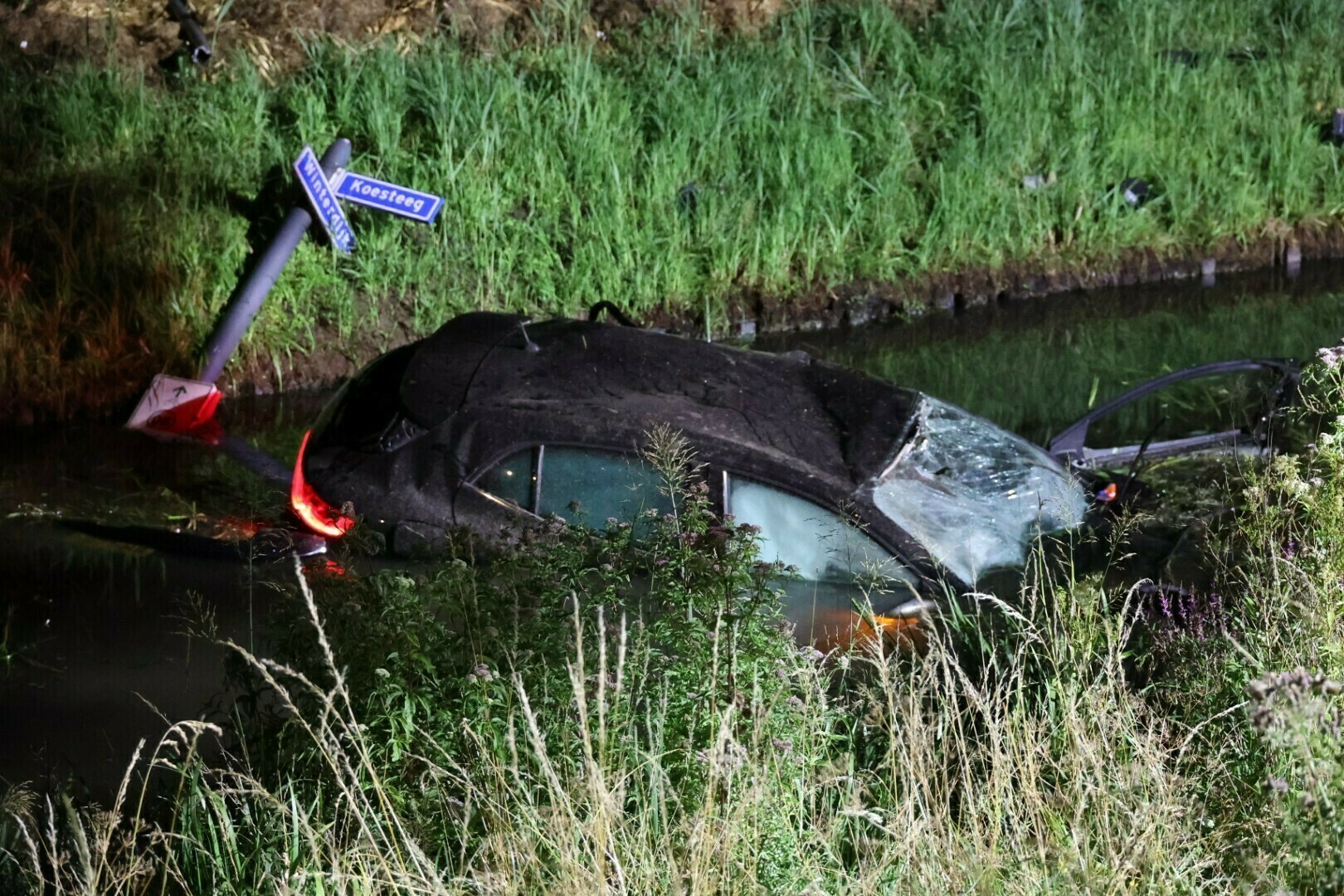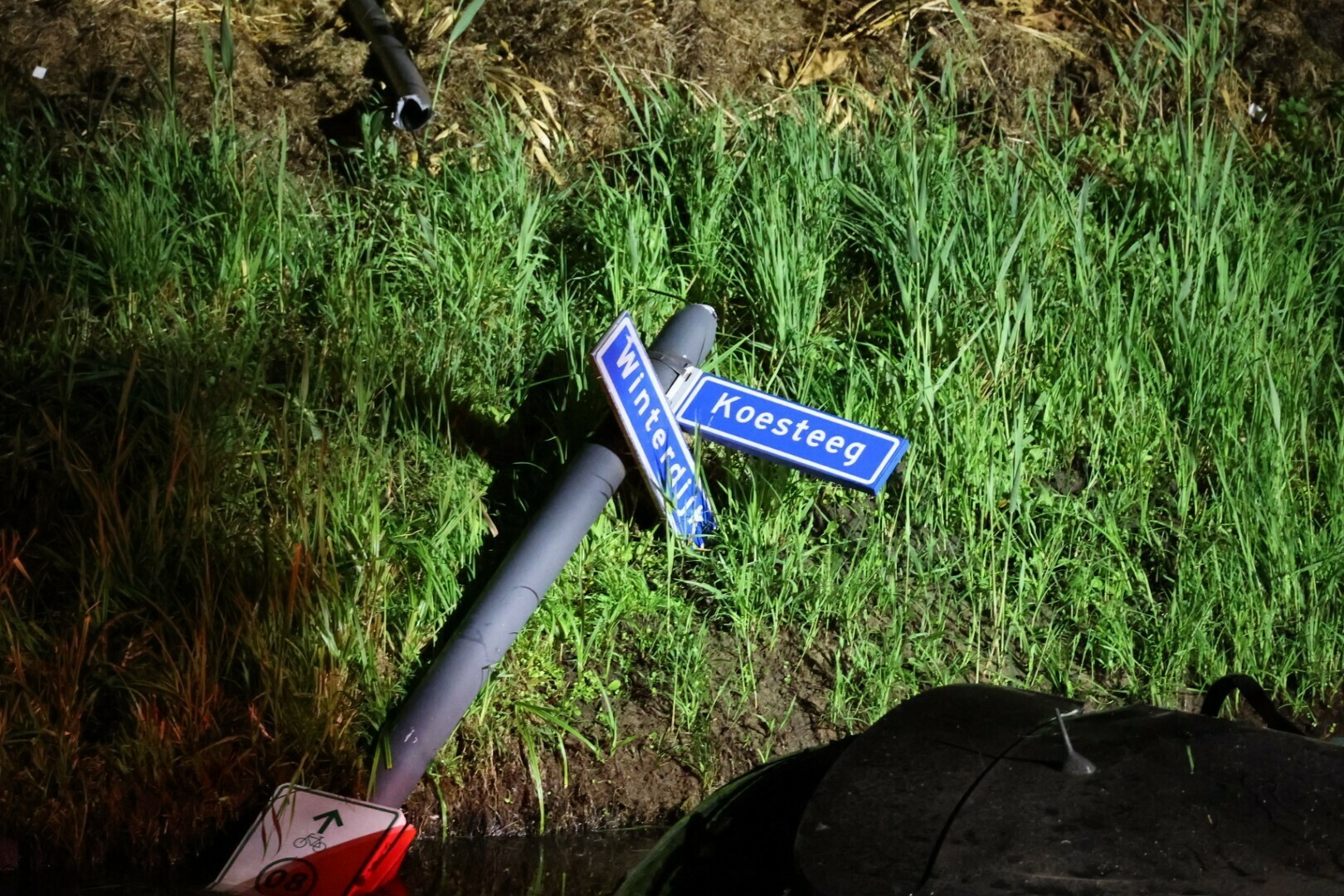 Voorbijgangers hebben afgelopen nacht rond 0.00 uur de brandweer gebeld omdat zij een auto in het water zagen liggen. De brandweer trof de auto aan onder aan de Winterdijk in een brede sloot en ging met het oppervlakte reddingsteam in het water en op de kant op zoek naar de inzittende van de auto. De auto bleek gezien de sporen uit de Koesteeg te zijn gekomen, daar heeft de bestuurder de knik in de weg gemist en is rechtdoor door de berm geschoten. De auto werd daarna gelanceerd over de Winterdijk tegen een lantaarnpaal en een dikke boom daarna is de auto met lantaarnpaal en al zwaar beschadigd in de sloot, die een 6 meter lager ligt dan de weg, tot stilstand gekomen.