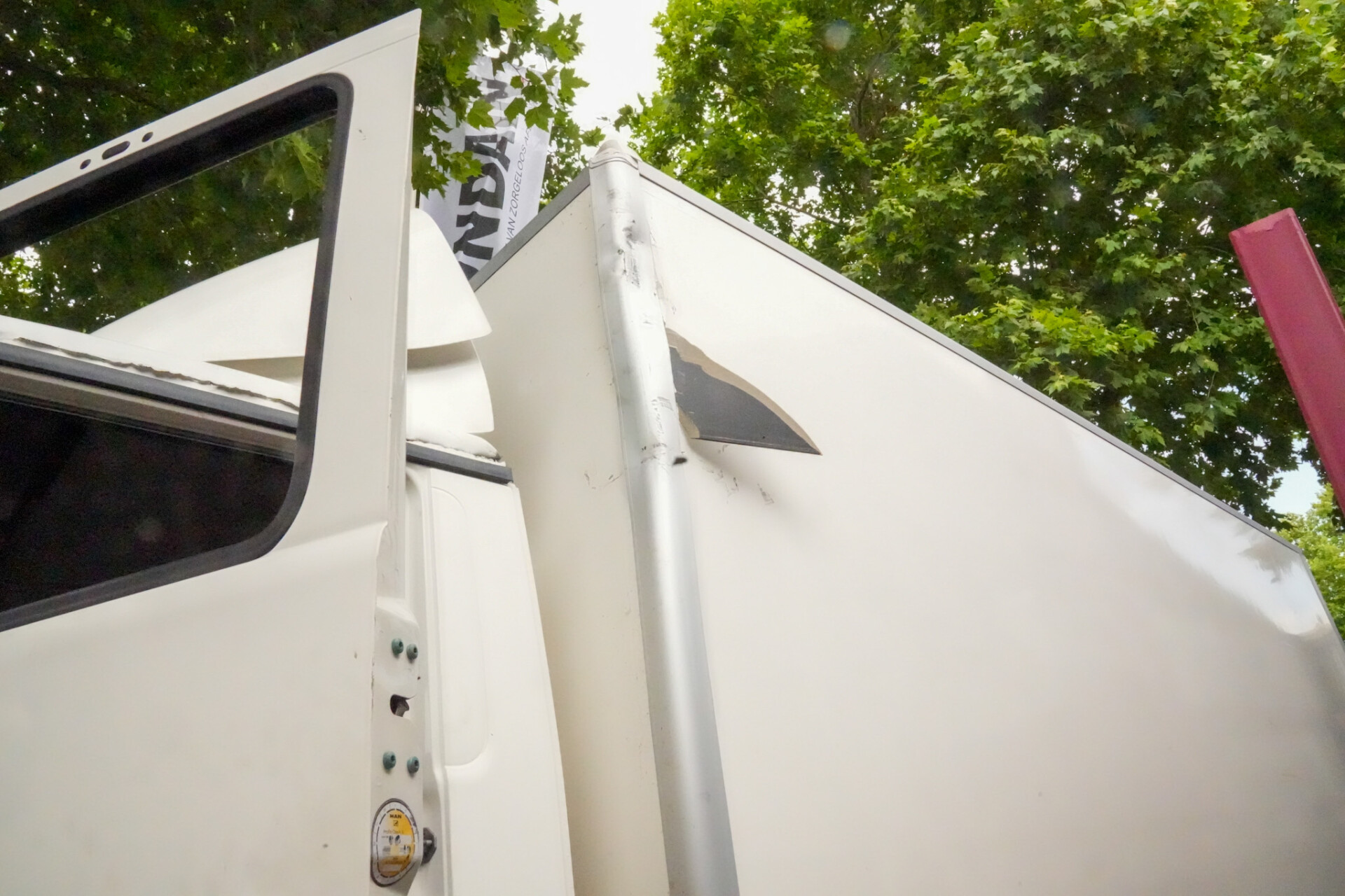 Niemand raakte gewond, maar onder andere de chauffeur was wel erg geschrokken. Vermoedelijk heeft hij een inschattingsfout gemaakt.