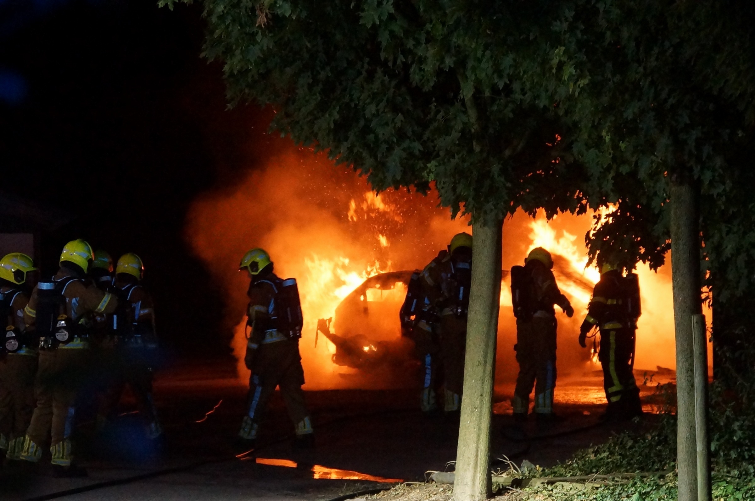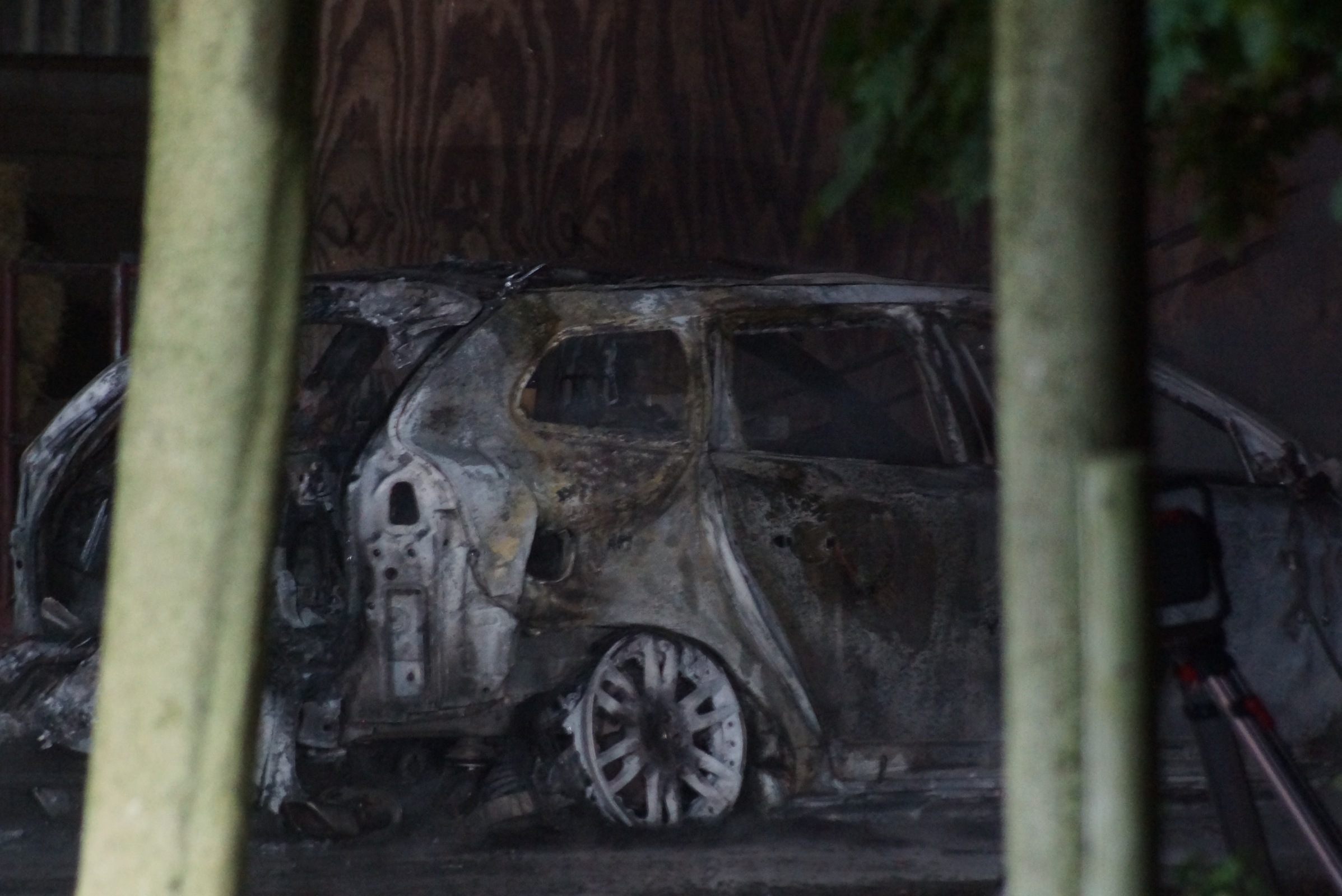De auto stond geparkeerd in een schuur. Bewoners hebben met een mobiele kraan de brandende auto uit de schuur kunnen trekken. Ook is een lastoestel veiliggesteld. De brandweer kwam met 2 wagens ter plaatse en hadden het vuur snel geblust. De auto brandde helemaal uit.