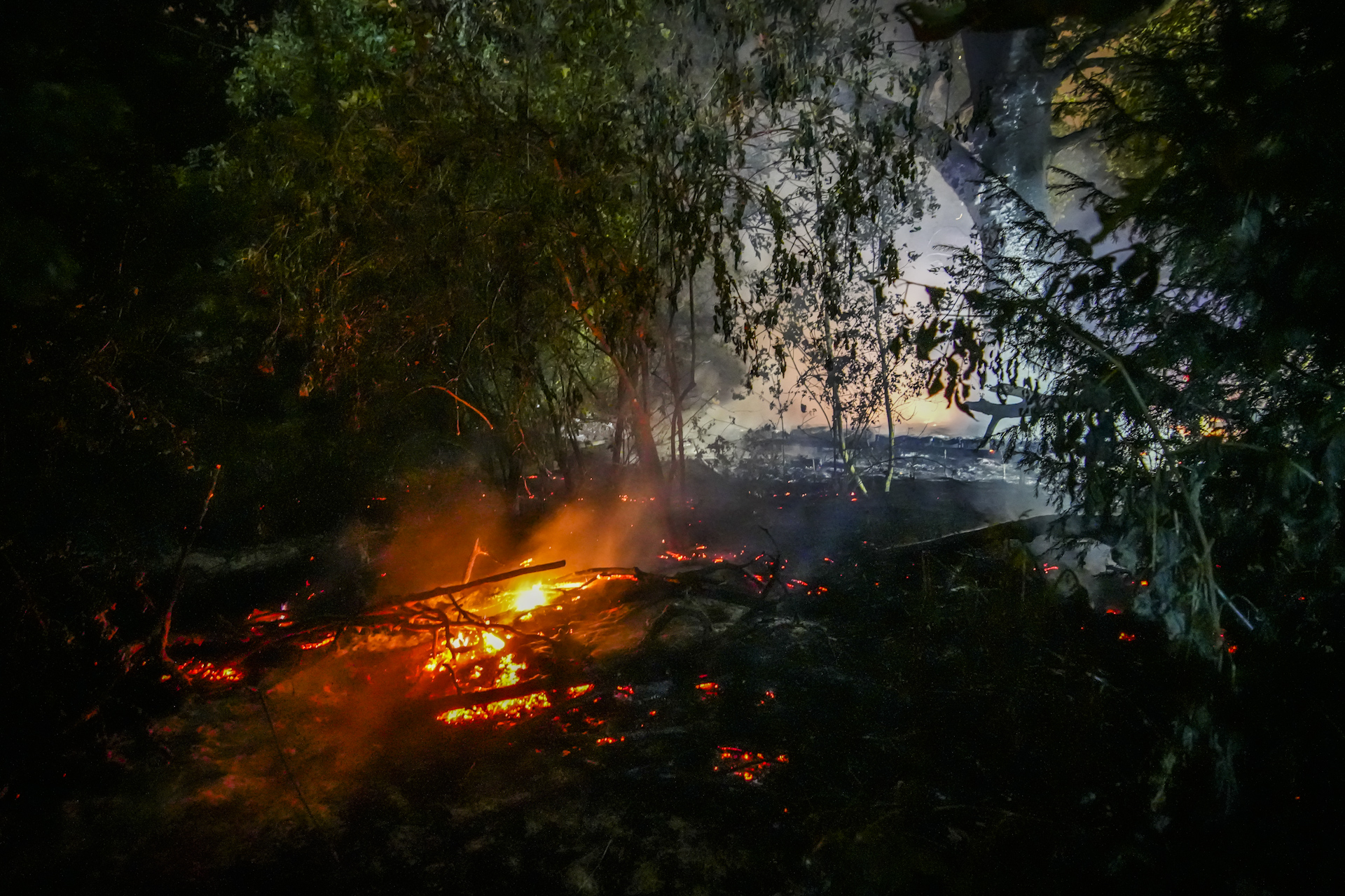 Het vuur sloeg snel om zich heen en was in het begin lastig te bereiken voor de brandweer. Een stuk van ongeveer 30×30 meter van de tuin stond in brand, met in het midden de monumentale wereldboom de gevlekte zuiderling. De nu zwartgeblakerde boom is omringd door een grote houten vlonder, deze is ook volledig afgebrand.