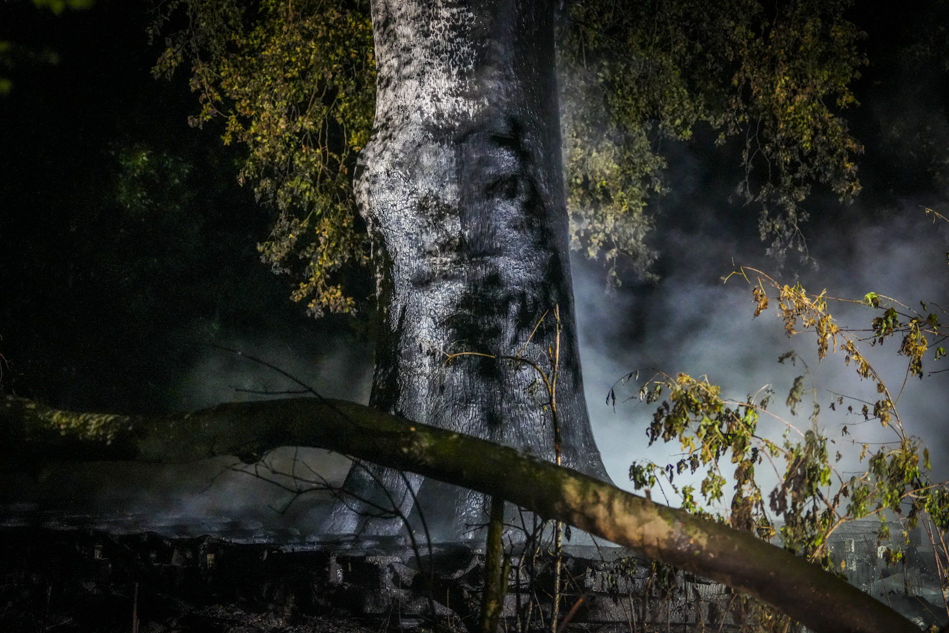 EINDHOVEN – In de nacht van donderdag op vrijdag is er aan de Bandalaan een monumentale wereldboom van meer dan 200 jaar oud en een flink stuk van een plantsoen afgebrand.