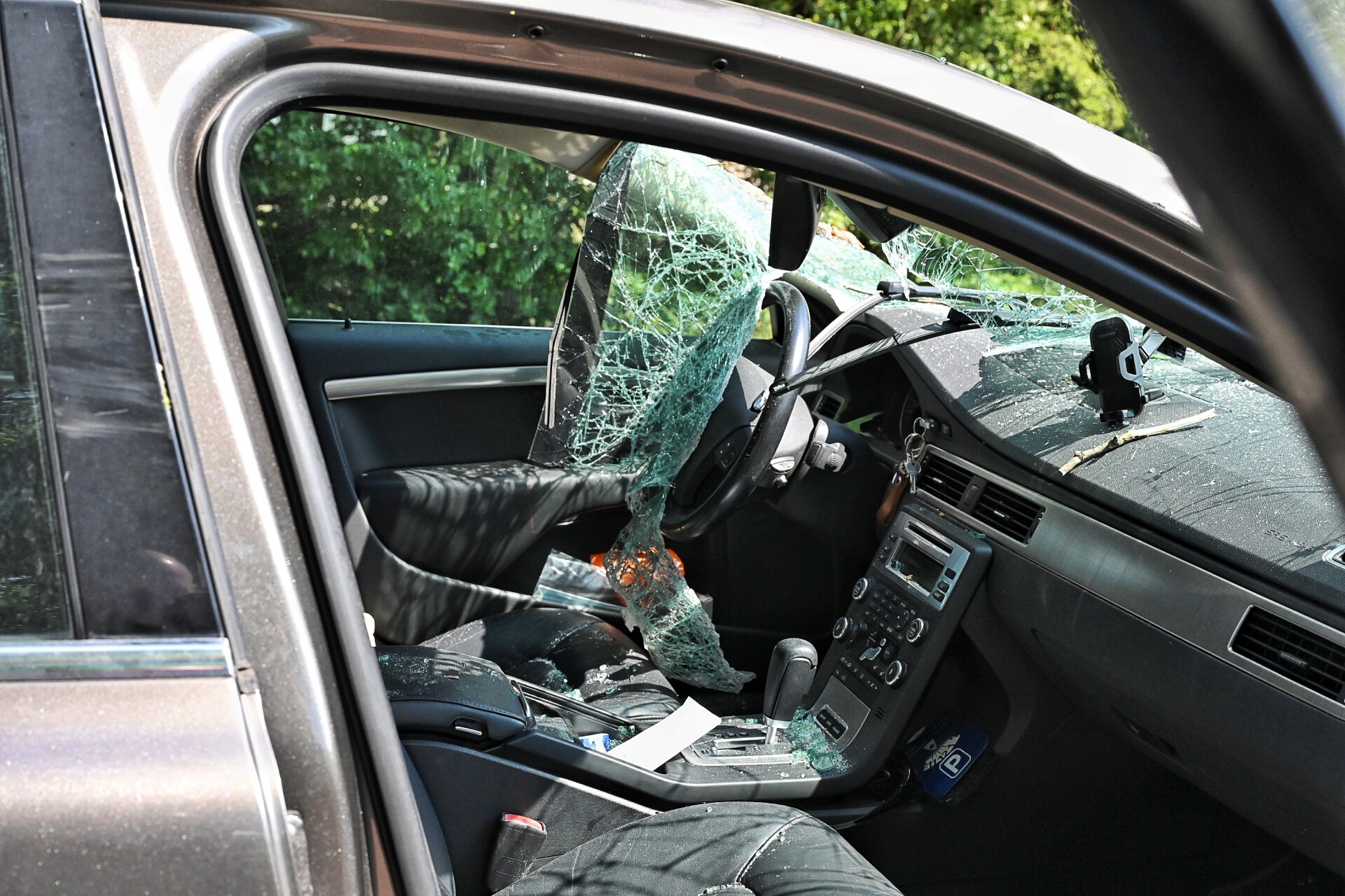 Een dikke tak belandde op de rijdende auto. „Wonder boven wonder bleef het letsel van de moeder en zoon bij wat schrammen”, aldus de agenten via Facebook.