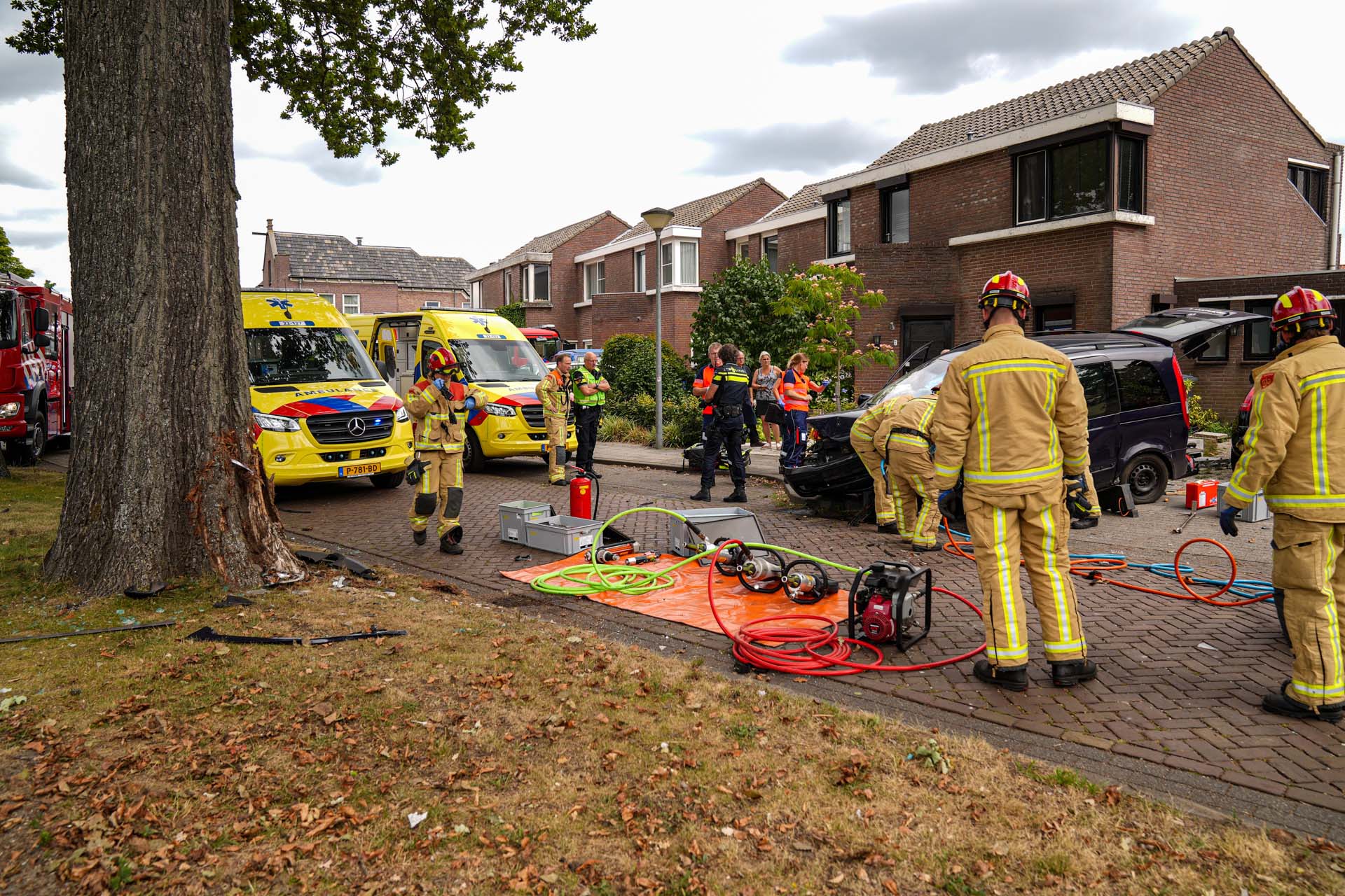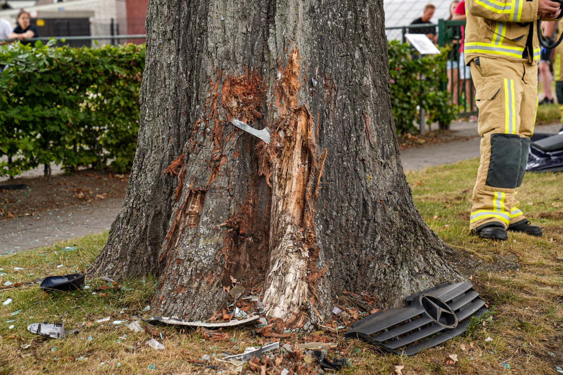 Auto klapt frontaal tegen de boom in woonwijk