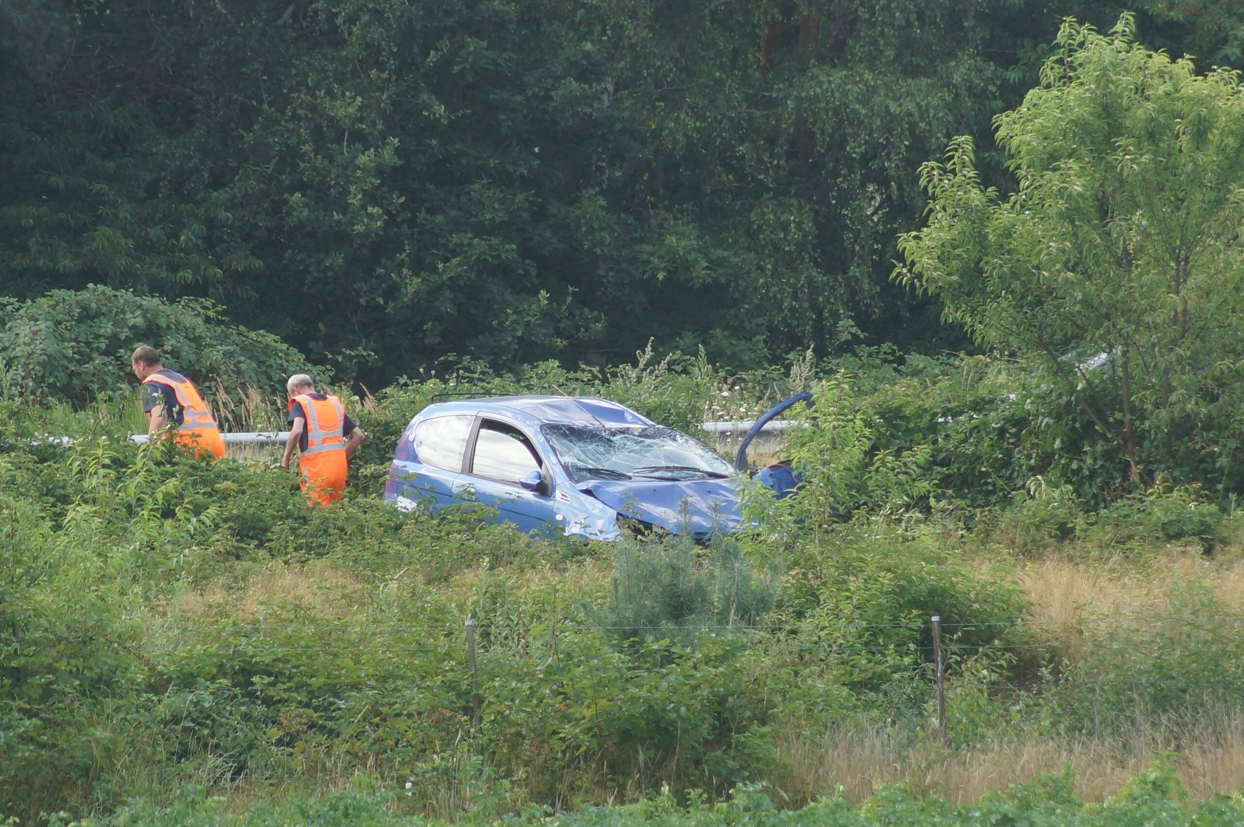 Ook waren er meerdere politiewagens ter plaatse. Hoe het ongeval kon gebeuren is niet bekend. De zwaar beschadigde auto is getakeld door een bergingsbedrijf.