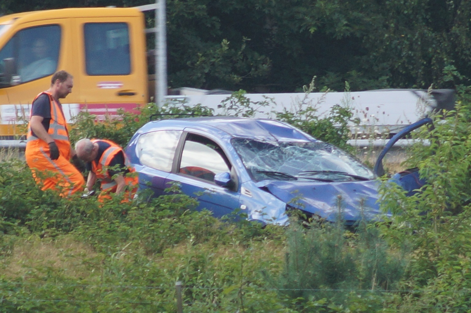 Ook waren er meerdere politiewagens ter plaatse. Hoe het ongeval kon gebeuren is niet bekend. De zwaar beschadigde auto is getakeld door een bergingsbedrijf.