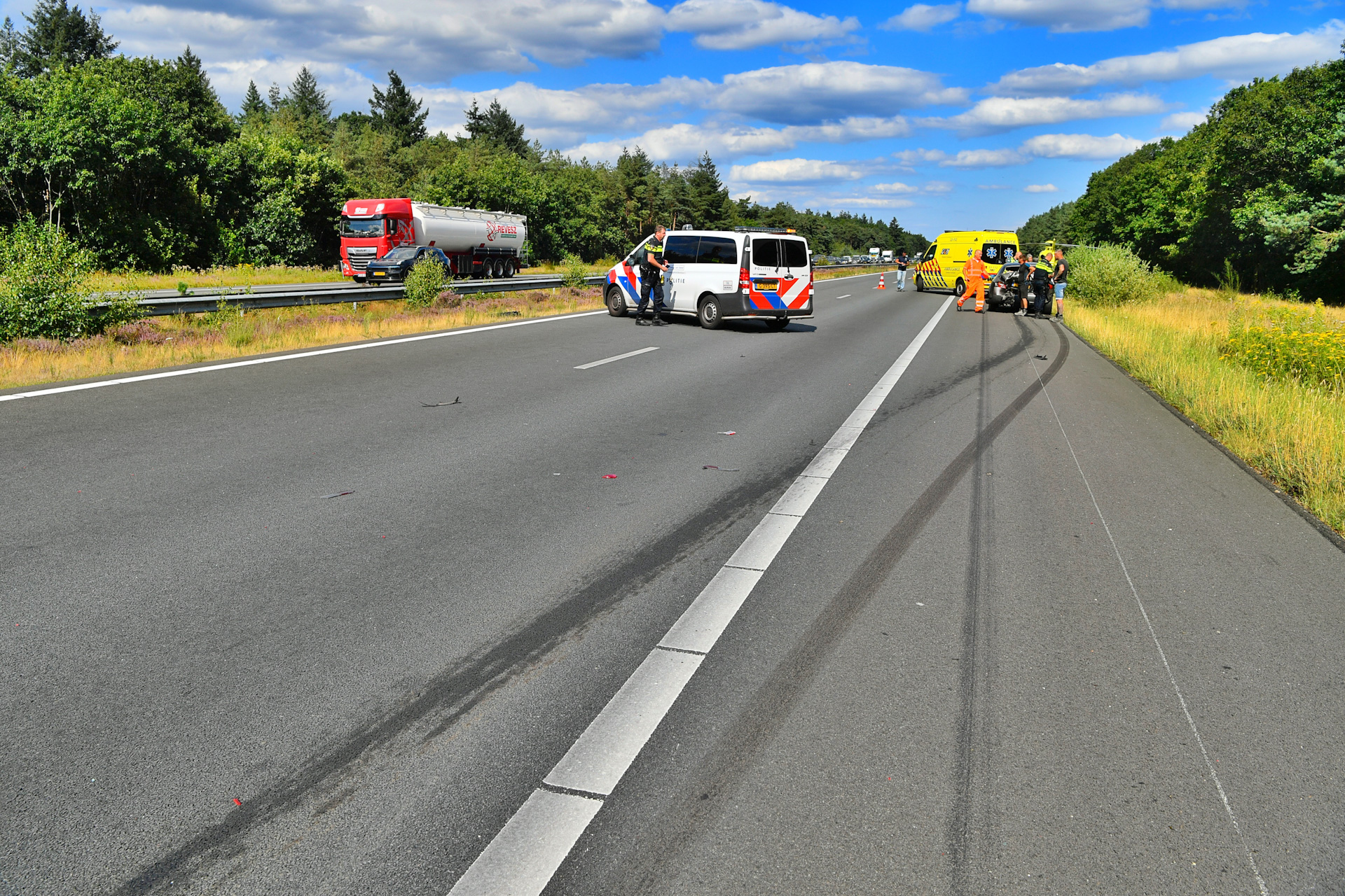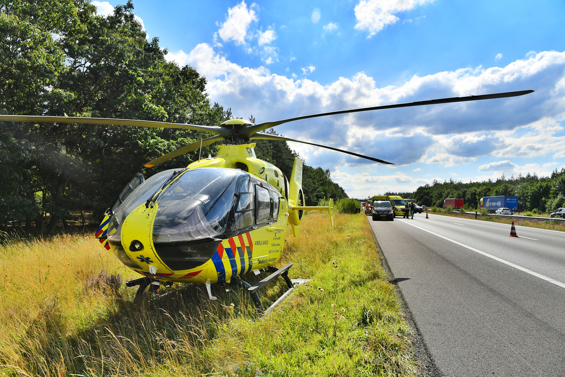 Kettingbotsing op A67, traumaheli landt bij snelweg