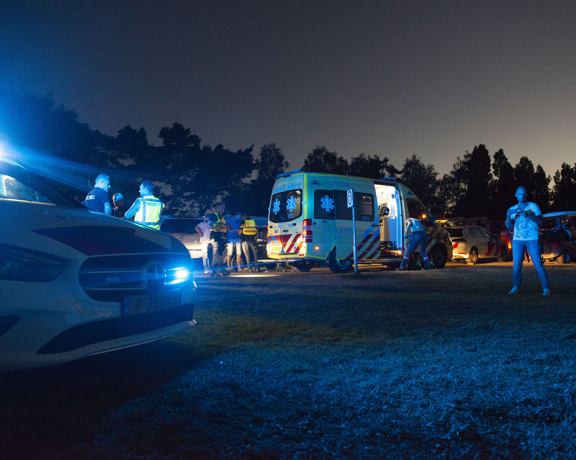 Rond 21:30 uur werden de hulpdiensten, waaronder een traumahelikopter, opgeroepen voor het ongeval. Ter plekke heeft een automobilist een dollemansrit gemaakt over het vakantiepark en klapte daarbij op een andere auto.
