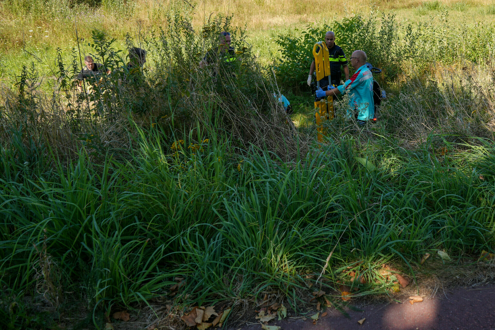De oudere vrouw is door onbekenden redenen van het fietspad geraakt en ruim 2 meter naar beneden gevallen en in de berm belandt.