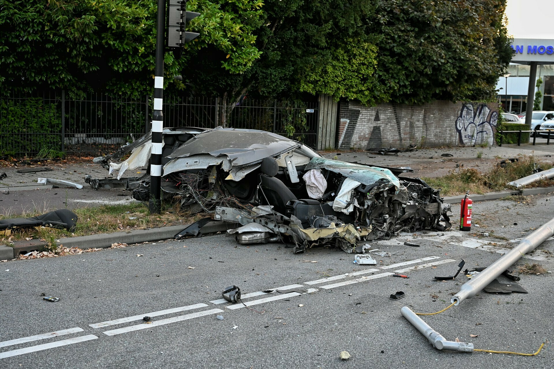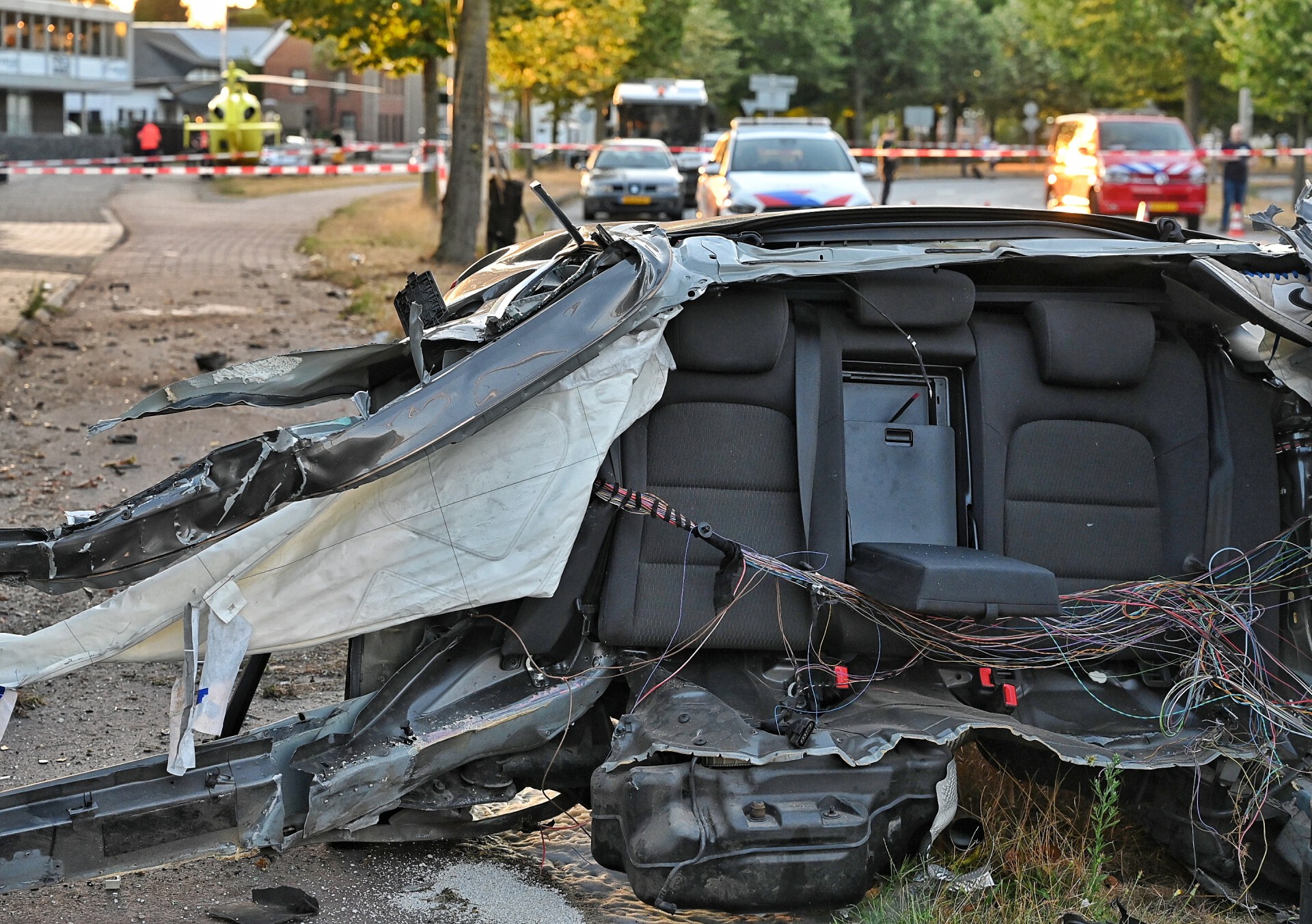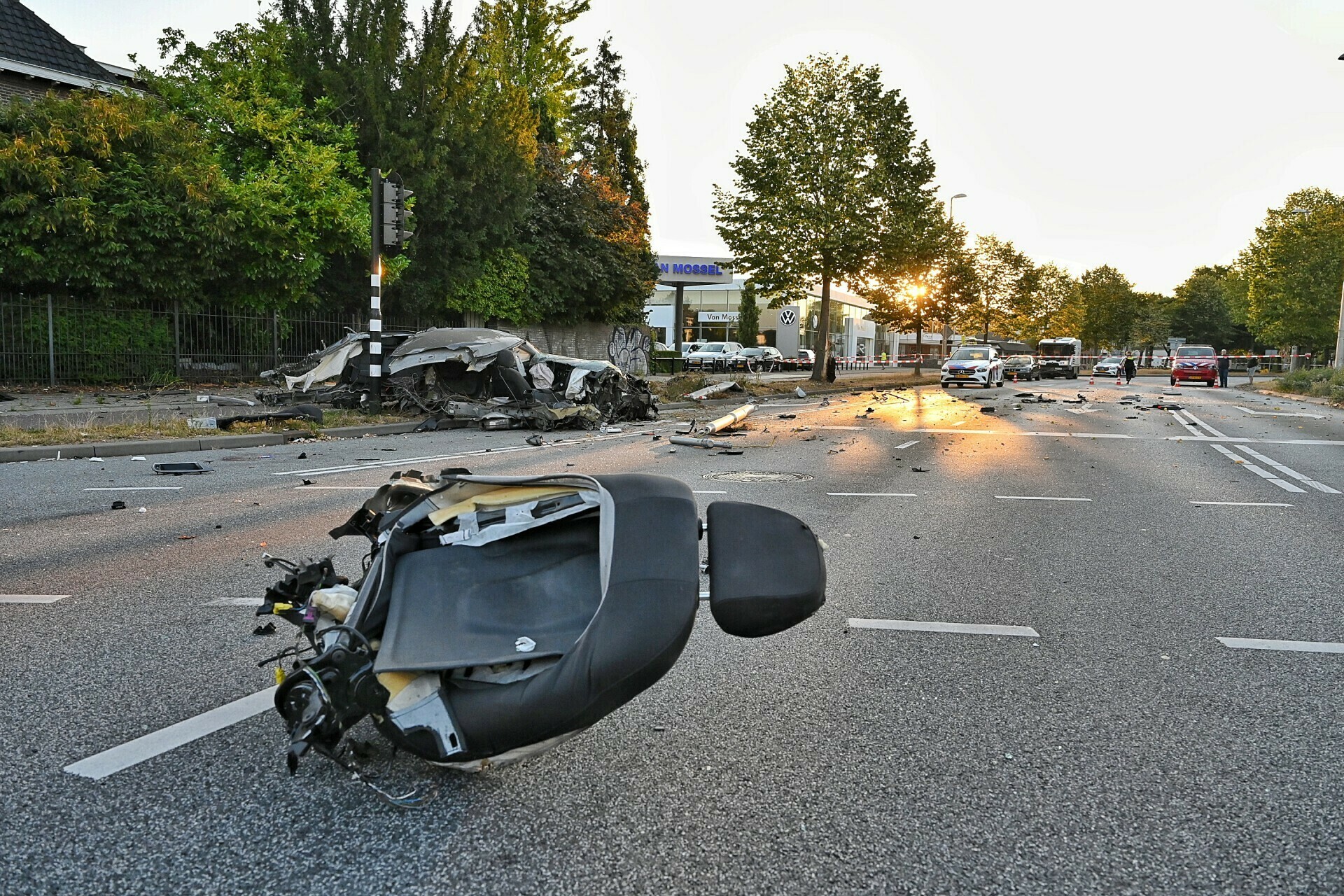 De ravage is enorm. Van de Audi is niets meer over en overal liggen brokstukken. Twee inzittenden raakten zwaargewond en zijn met spoed overgebracht naar het ziekenhuis. De weg is dicht vanwege politie onderzoek tot zeker 10.00 uur.