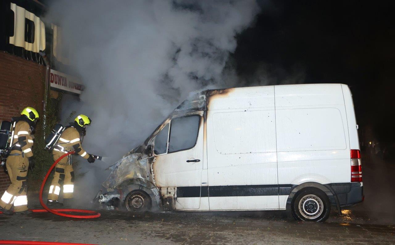 Rond 00:50 uur kwam de melding binnen, waarna de brandweer direct uitrukte. Bij aankomst stond de voorzijde van de bestelbus al volledig in lichterlaaie. De brandweer had het vuur snel onder controle maar kon niet voorkomen dat de bus volledig uitbrandde.