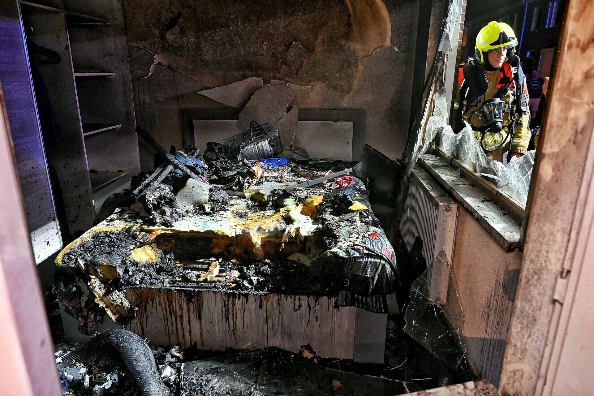 Ondanks het snelle optreden van de brandweer kon niet voorkomen worden dat de slaapkamer volledig is uitgebrand.