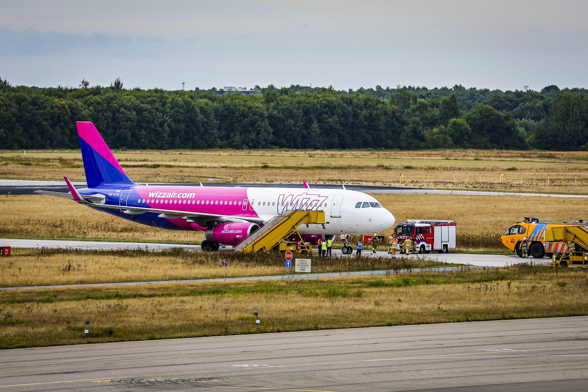 De ongeveer 180 inzittenden zijn uit het vliegtuig gehaald, dat stil kwam te staan tussen de startbaan en het platform. Het incident heeft volgens de woordvoerder geen invloed op andere vluchten. Of het vliegtuig van Wizz Air zondagavond nog zal vertrekken richting Boedapest is onbekend.