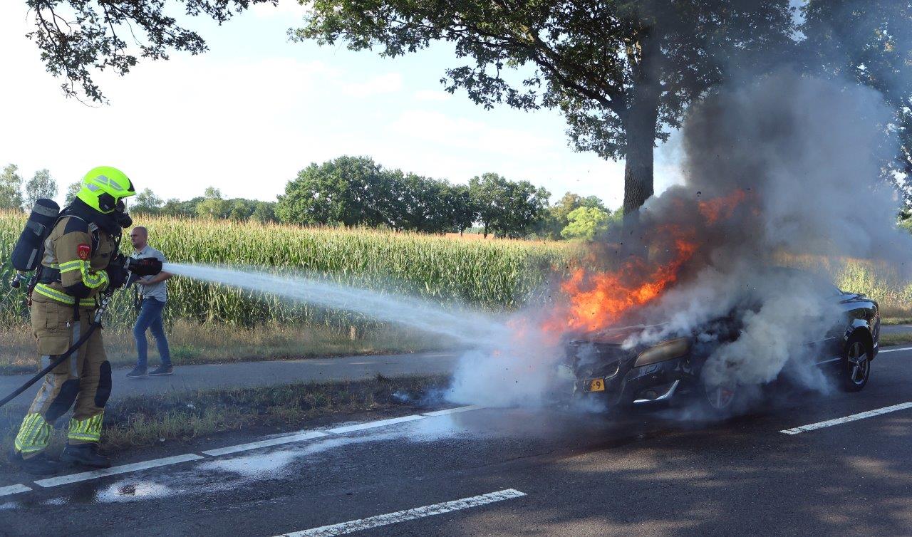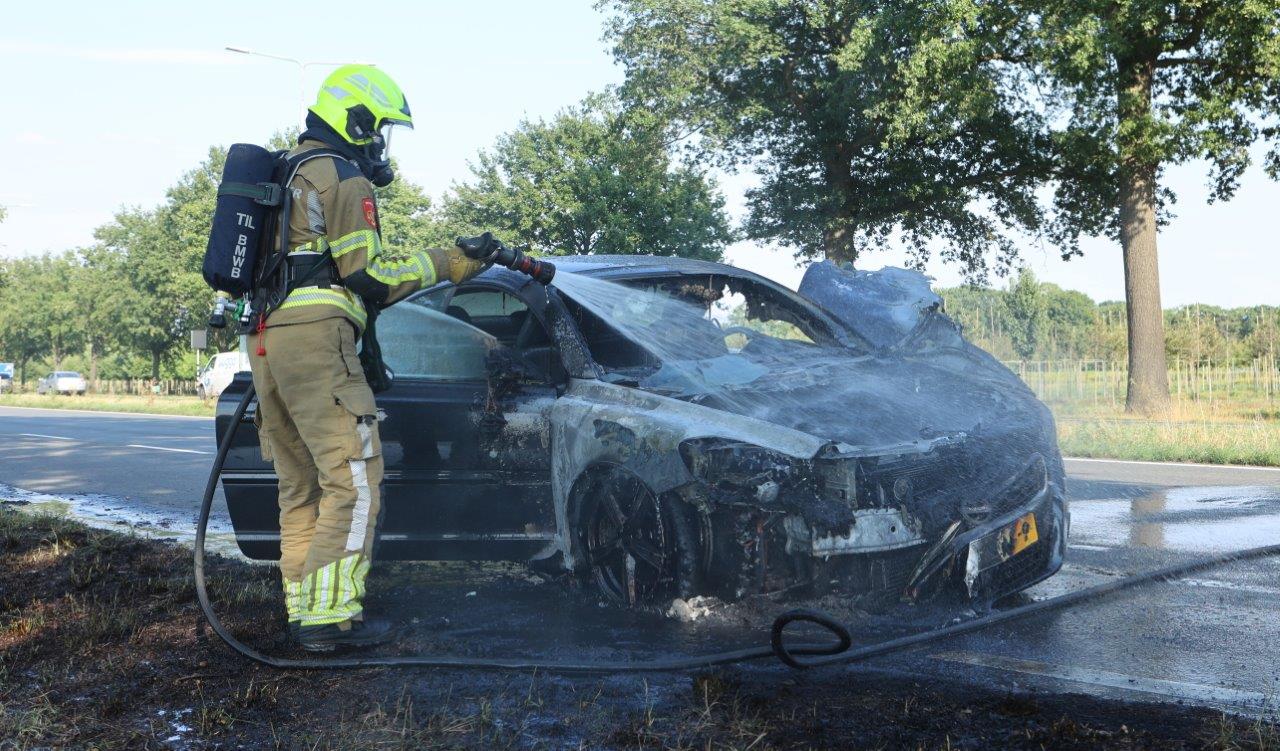 BIEZENMORTEL – Een auto is op de N65 bij Biezenmortel in vlammen opgegaan.