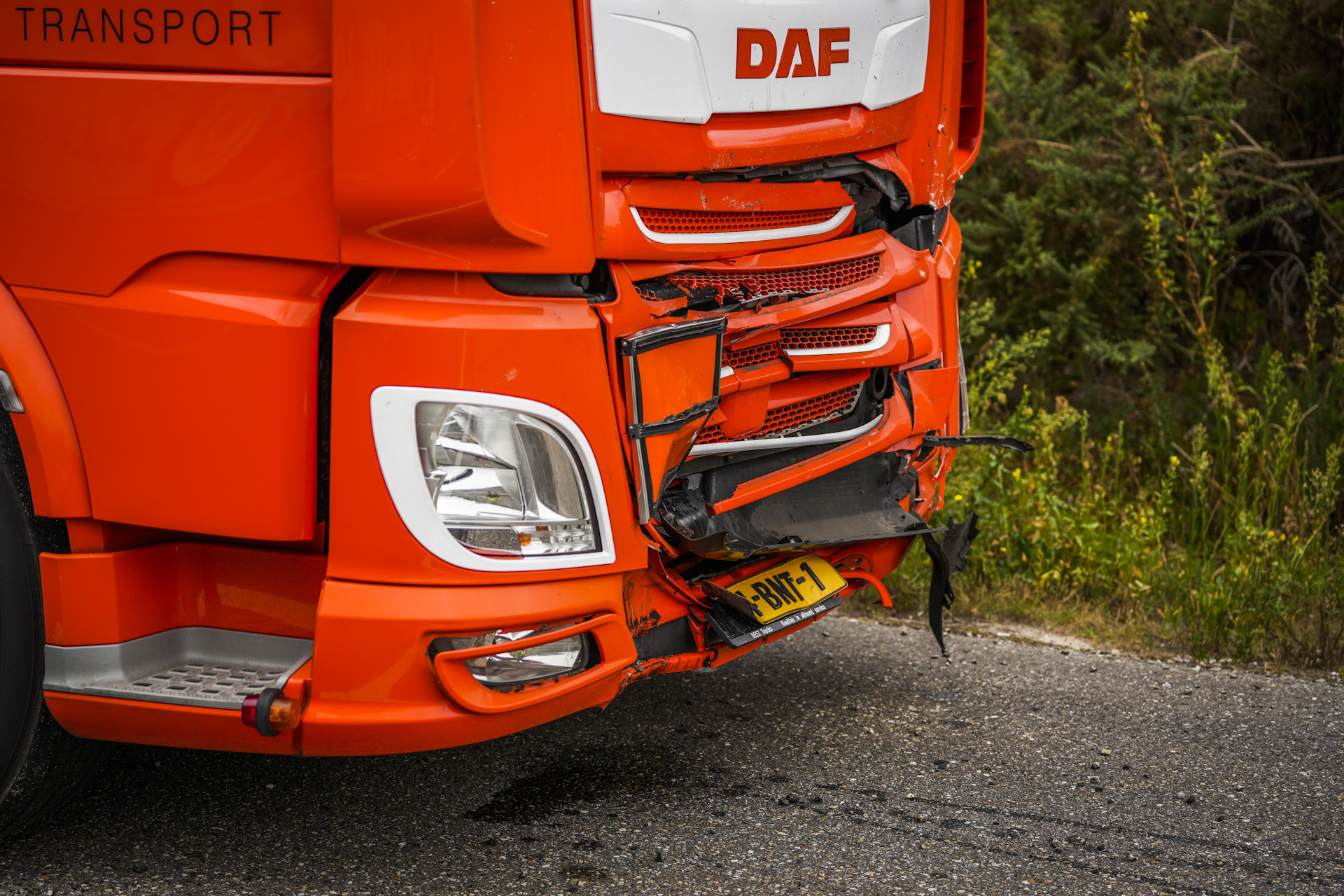 Een vrachtwagen is op een personen wagen gebotst. De auto ging volgens de politie flink op de rem voor een bord waar de nieuwe snelheid (50) op stond. Een vrachtwagen kon niet op tijd remmen en botste achterop.