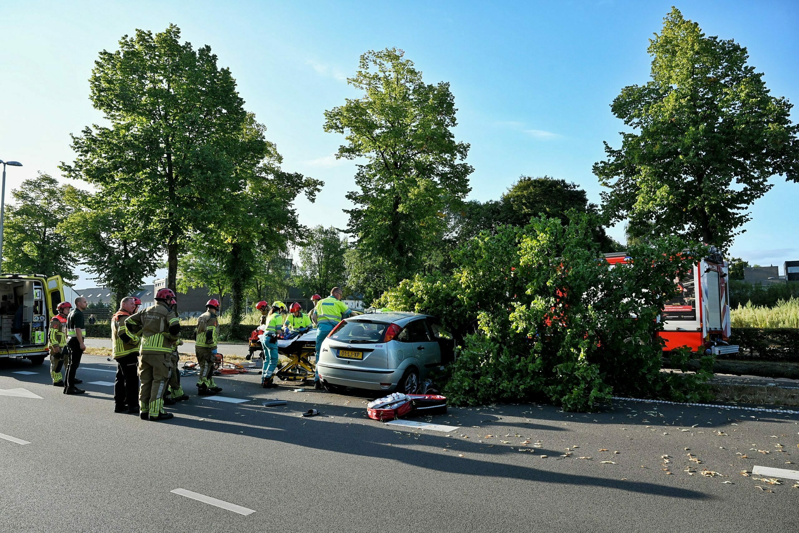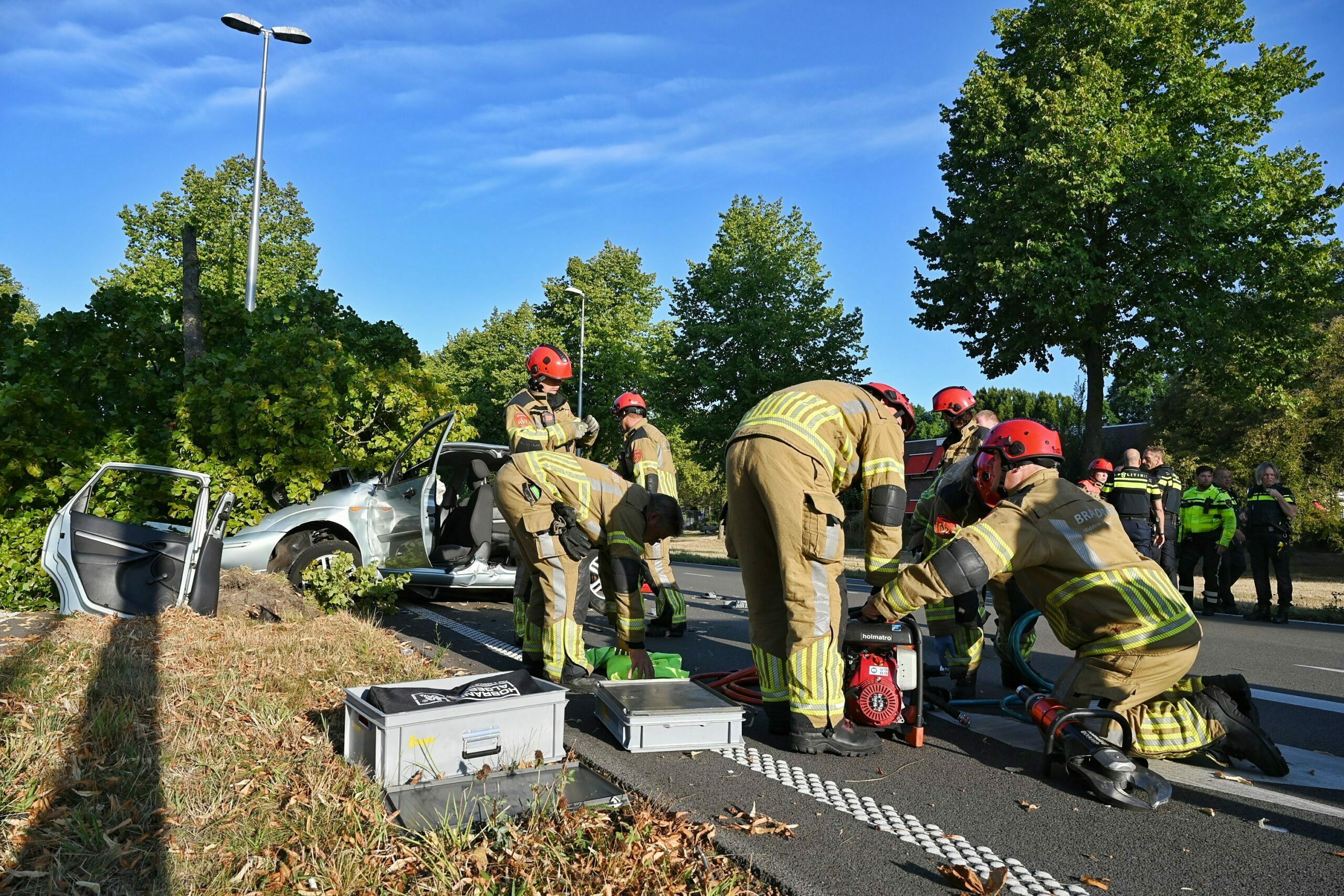De brandweer heeft de gewonde bestuurder uit de auto bevrijd. Het slachtoffer is met de ambulance naar een ziekenhuis gebracht.