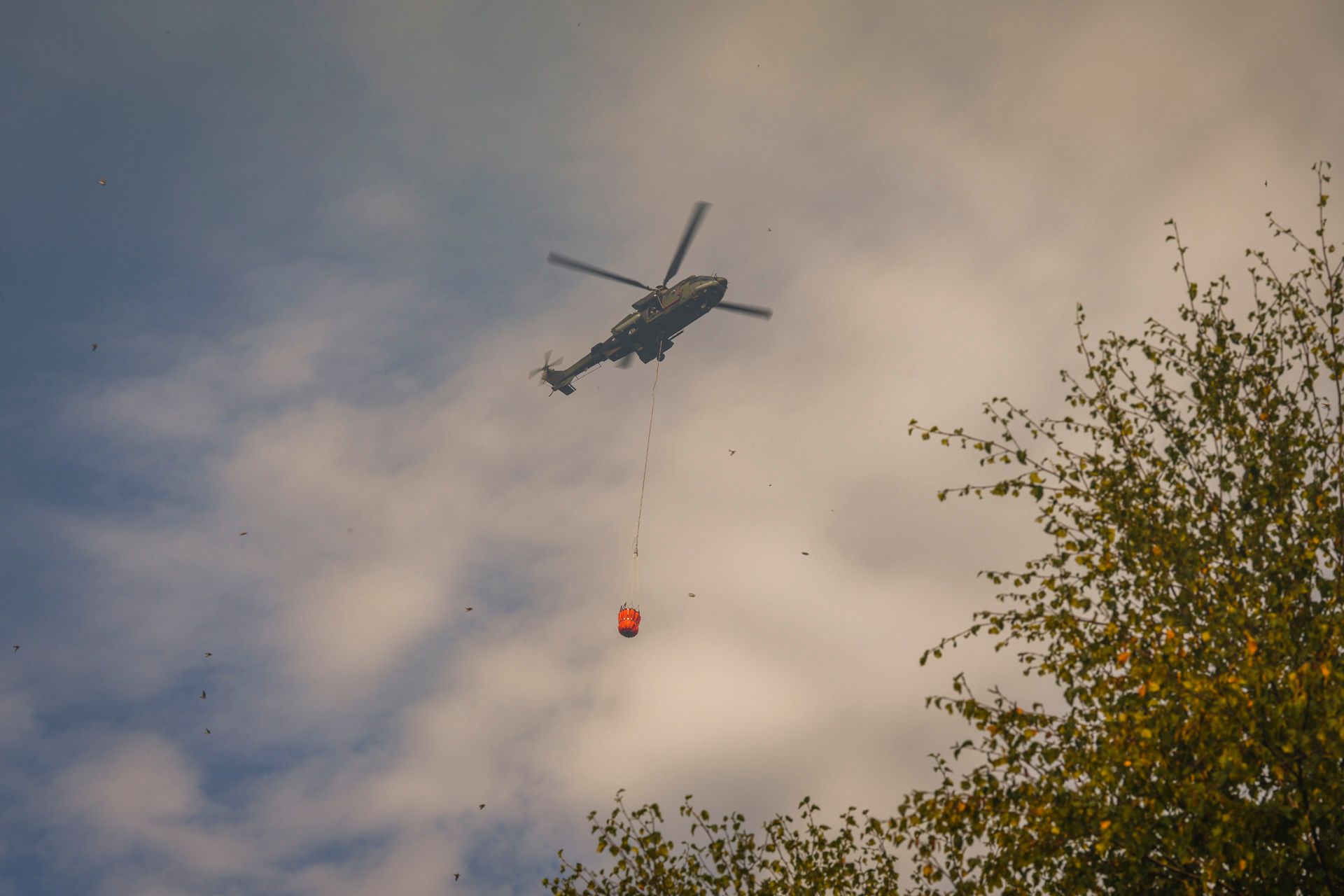 Daarnaast vliegt er een helikopter van de politie met een infraroodcamera boven het gebied om een goed zicht op de brand te krijgen, aldus de woordvoerder. Daartoe is ook een speciaal droneteam van industrieterrein Chemelot in Geleen aanwezig.
