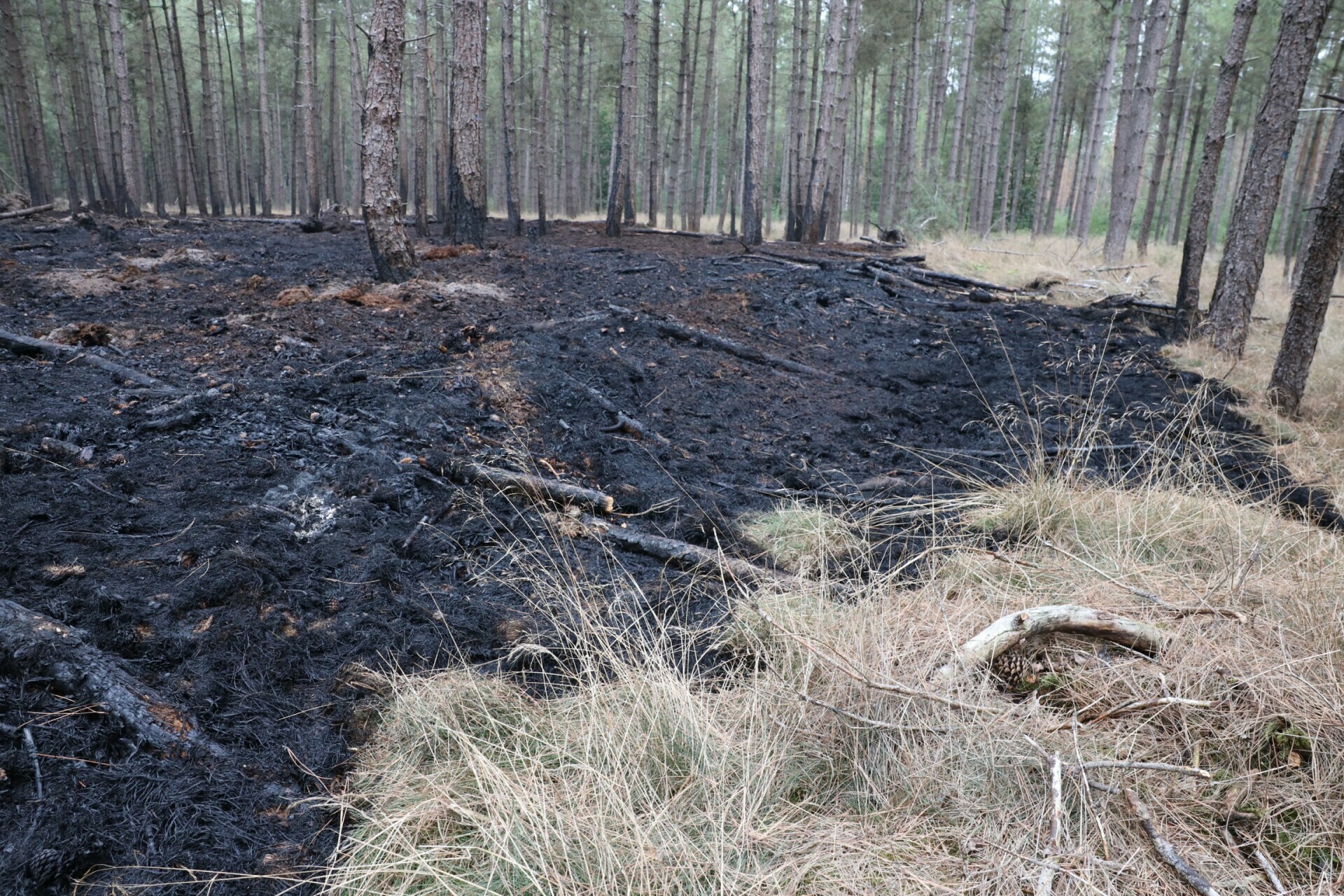 Geplaatst op 2 september 2022, om 13:07 uurBEST – Bij daglicht is in het bosperceel nabij de Schietbaanlaan in Best de schade na aanleiding van een grote brand goed te zien.