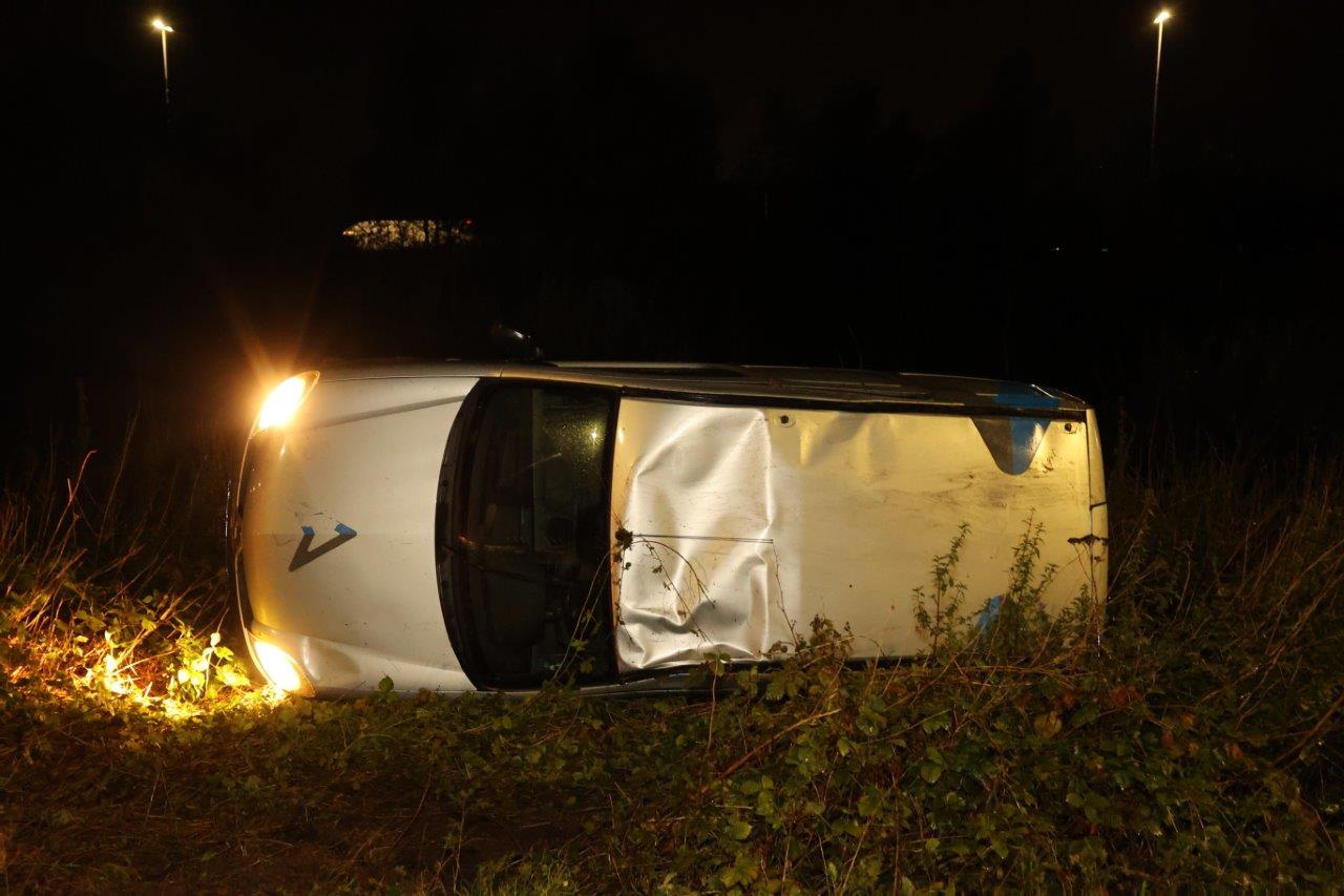 De melding van het ongeval kwam rond 22:45 uur binnen bij de hulpdiensten. Een man bleek met een bedrijfswagen in de bocht van de afrit van de weg te zijn geraakt, waarna hij over de kop sloeg en op zijn kant tot stilstand kwam. De brandweer, politie en ambulancedienst kwamen ter plaatse. De bestuurder bleek al uit het voertuig te zijn toen zij aankwamen. De man werd na controle door de medewerkers van de ambulancedienst naar het Jeroen Bosch ziekenhuis in Den Bosch gebracht.