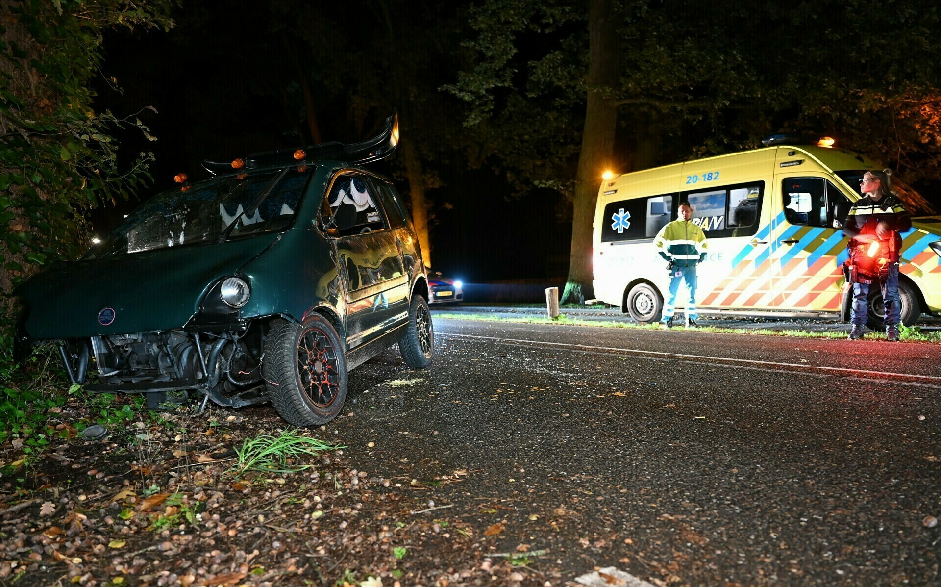 Geplaatst op 2 oktober 2022, om 01:07 uurOISTERWIJK – Zaterdagavond zijn twee mannen met hun net gekochte 45km wagen tegen een boom gebotst aan de Gemullenhoekenweg in Oisterwijk. De auto belande na de botsing op zijn kant.