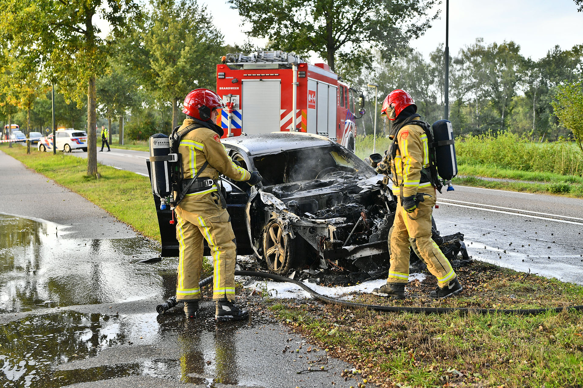 De brandweer werd met twee wagen vanuit Veldhoven en Waalre uitgestuurd. Het voertuig kwam enkele uren eerder uit de garage. De bestuurder bleef ongedeerd. Hij wist zijn voertuig nog aan de kant van de weg te parkeren. De weg is tijdelijk afgesloten geweest voor beide richtingen.