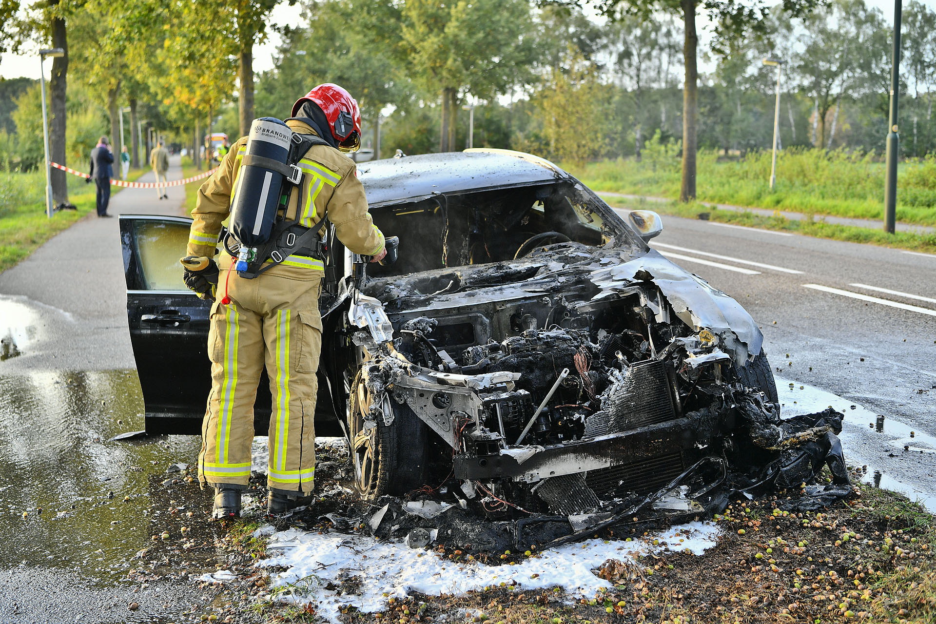 Geplaatst op 4 oktober 2022, om 20:46 uurWAALRE – Een personenauto vatte dinsdagavond spontaan vlam op de Onze Lieve Vrouwendijk in Waalre.