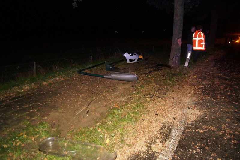 Het ongeval gebeurde rond halfdrie in de nacht. Door onbekende oorzaak verloor de bestuurder de macht over het stuur waarna hij met zijn auto meerdere bomen langs de weg en een lantaarnpaal ramde.