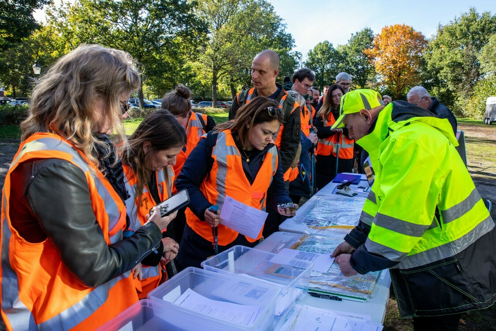 De ongeveer honderd aanwezige vrijwilligers hebben zich opgesplitst in groepen. Een team van ruim tien man loopt na een korte pauze aan het begin van de middag langs de waterkant ten zuiden van het Oude Maasje. Dat is niet ver weg van de locatie waar dinsdag is gezocht in het water, na een melding van een auto in het water bij de Hooiweg. Maar dat leverde geen voertuig op. Ook een politiehelikopter vliegt af en toe over het gebied.