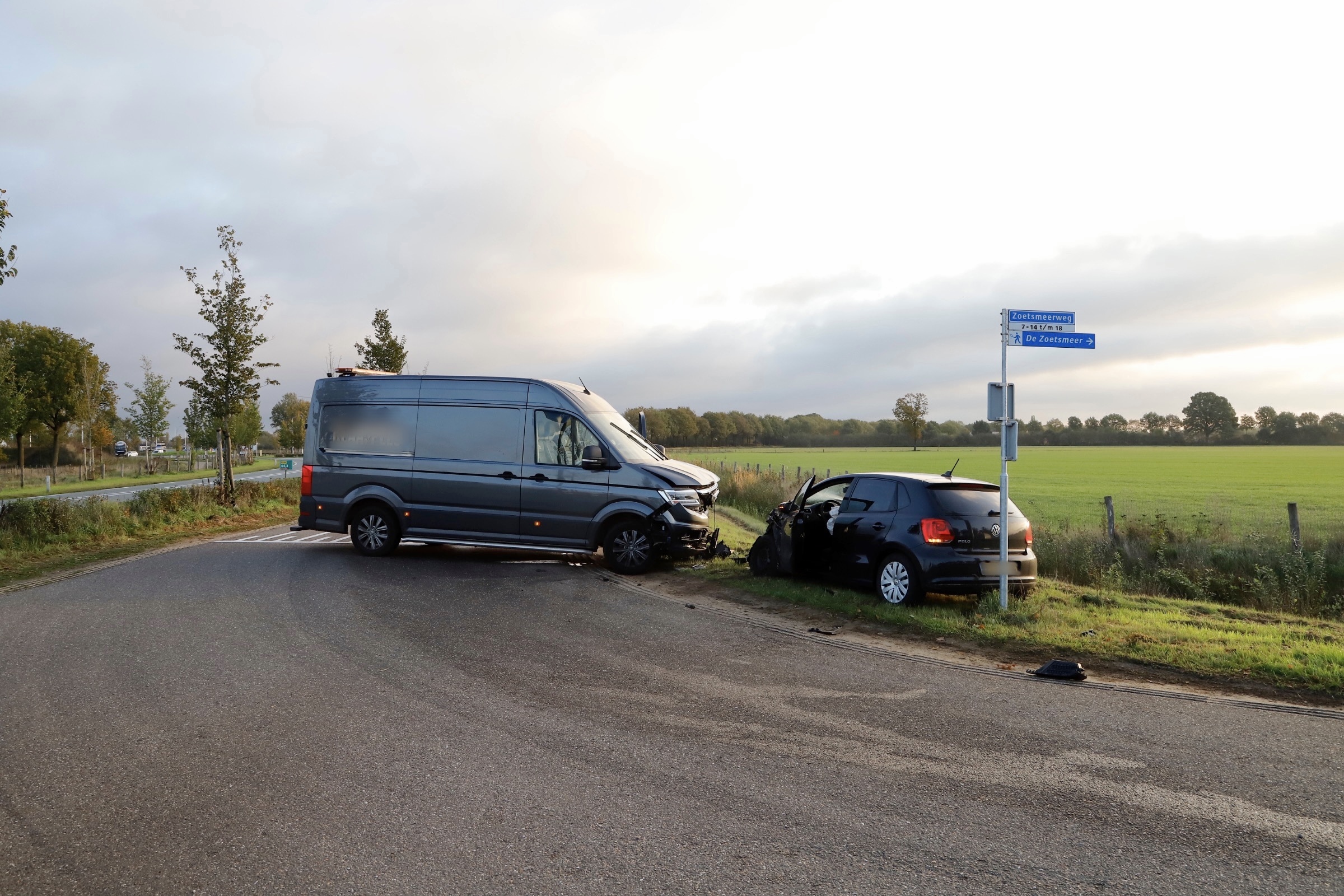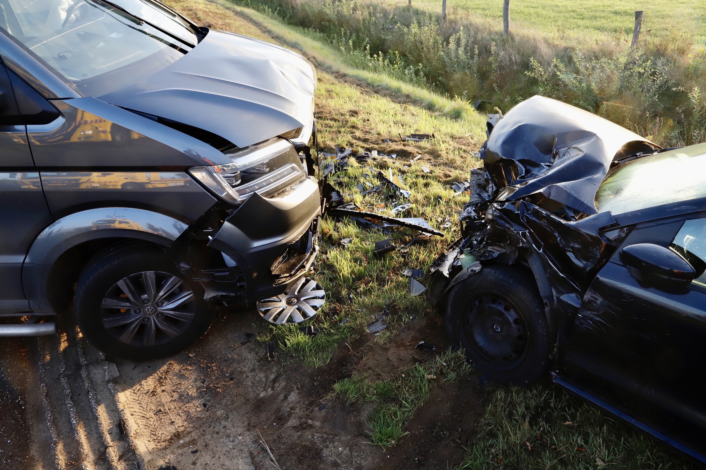 Bestelbus en auto botsen frontaal op elkaar, veel schade