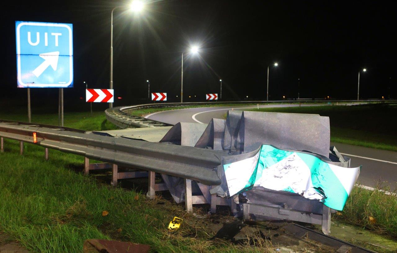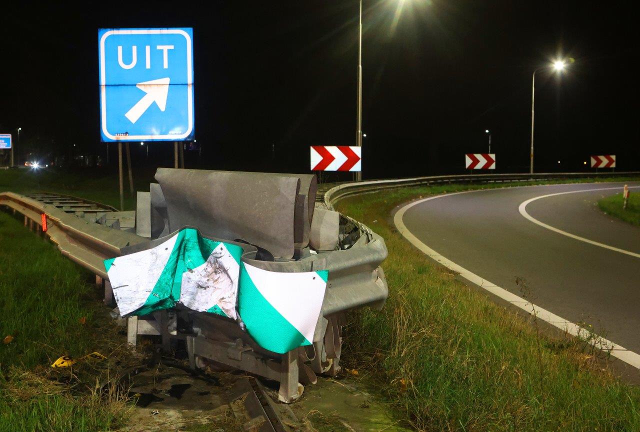 Automobiliste ziet afslag te laat en botst tegen vangrail bij Den Bosch