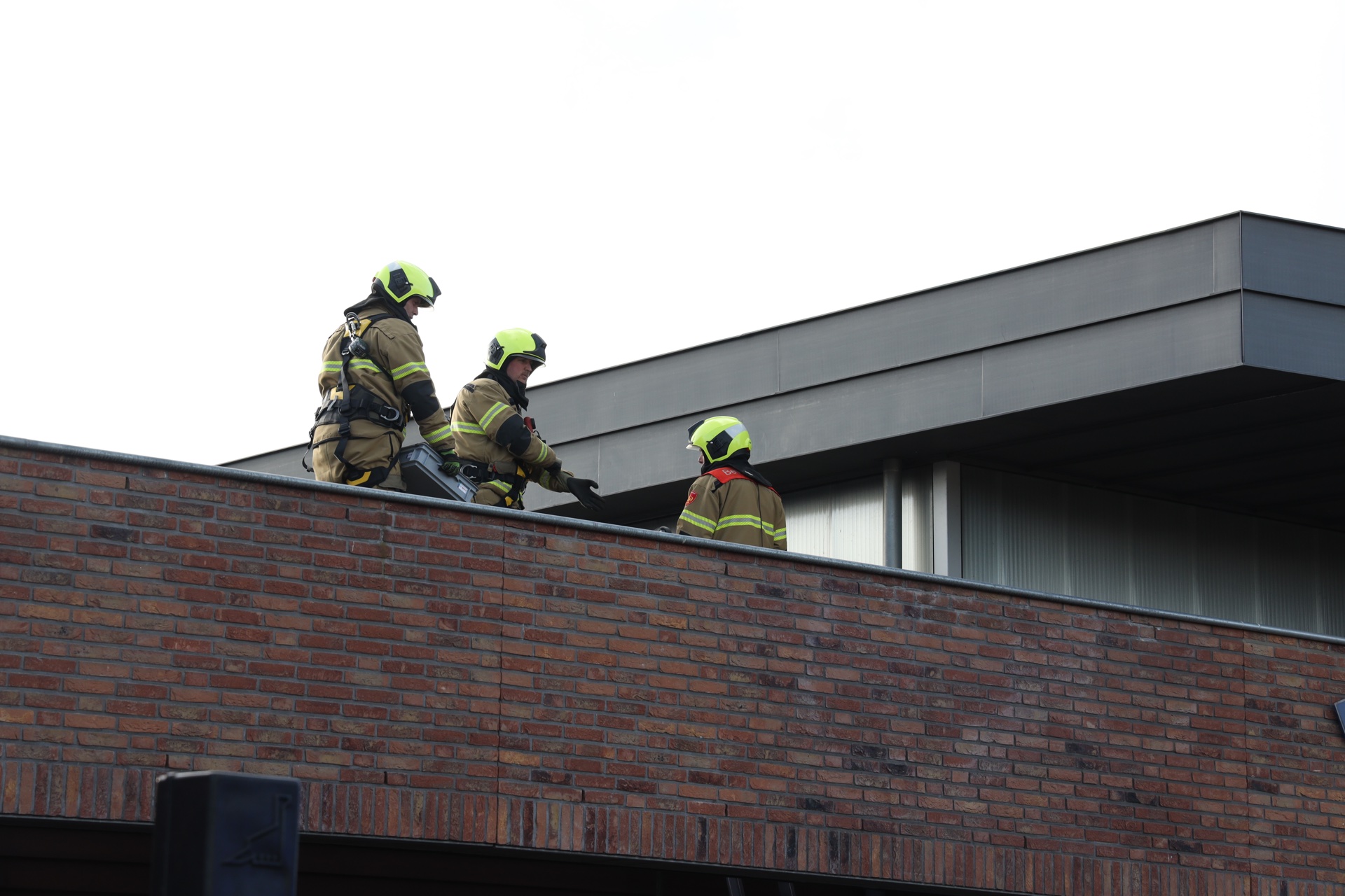 Op het dak van het MFC woede een kleine brand, welke mogelijk in ontstaan tijdens werkzaamheden op het dak. Het volledige MFC inclusief de basisschool die daar in het pand zit, is ontruimd. Enkele jonge leerlingen staan toe te kijken hoe de brandweerlieden de klus klaren.