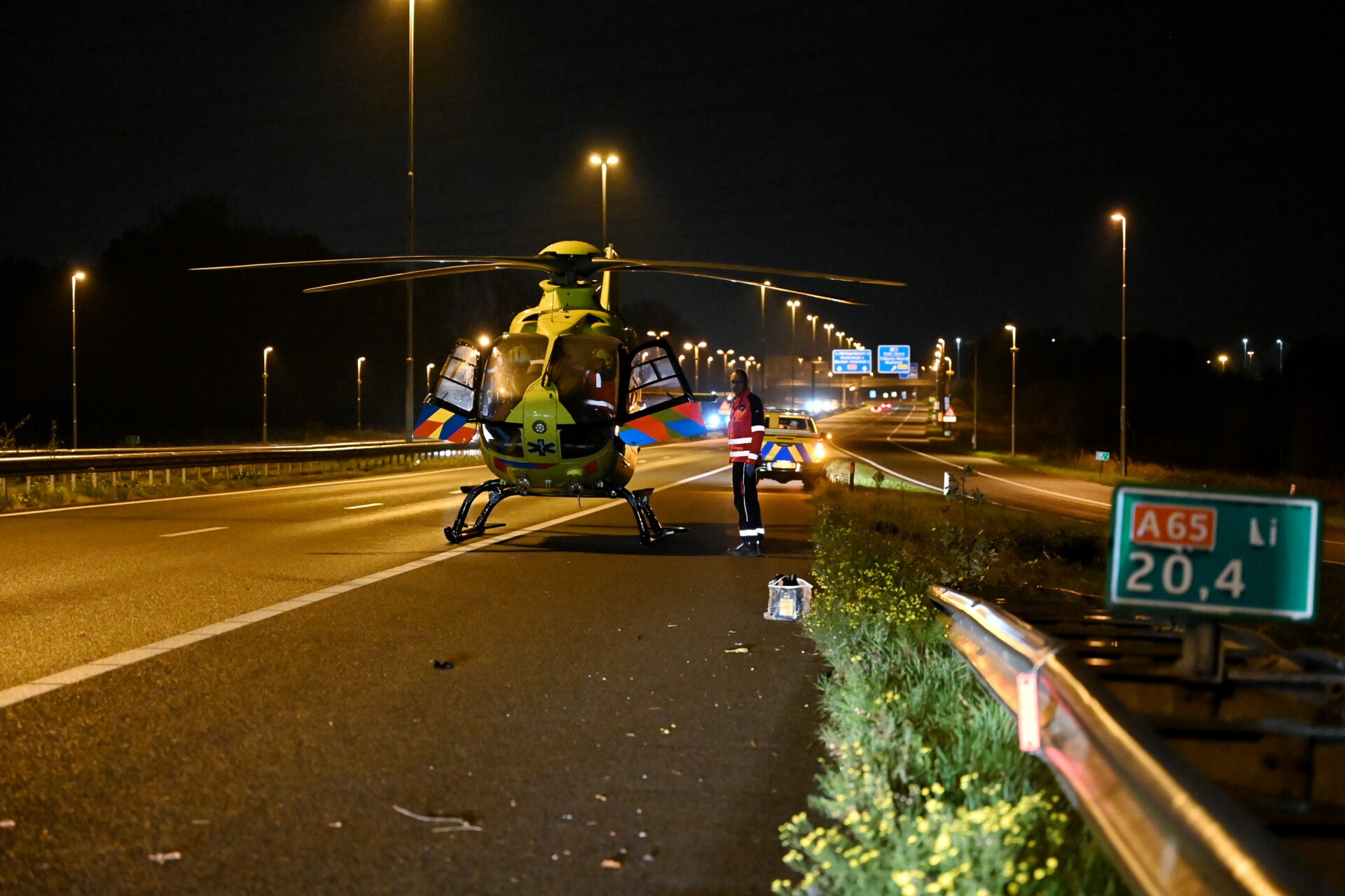 Vier gewonde bij flink ongeluk op de A65, traumaheli landt op snelweg