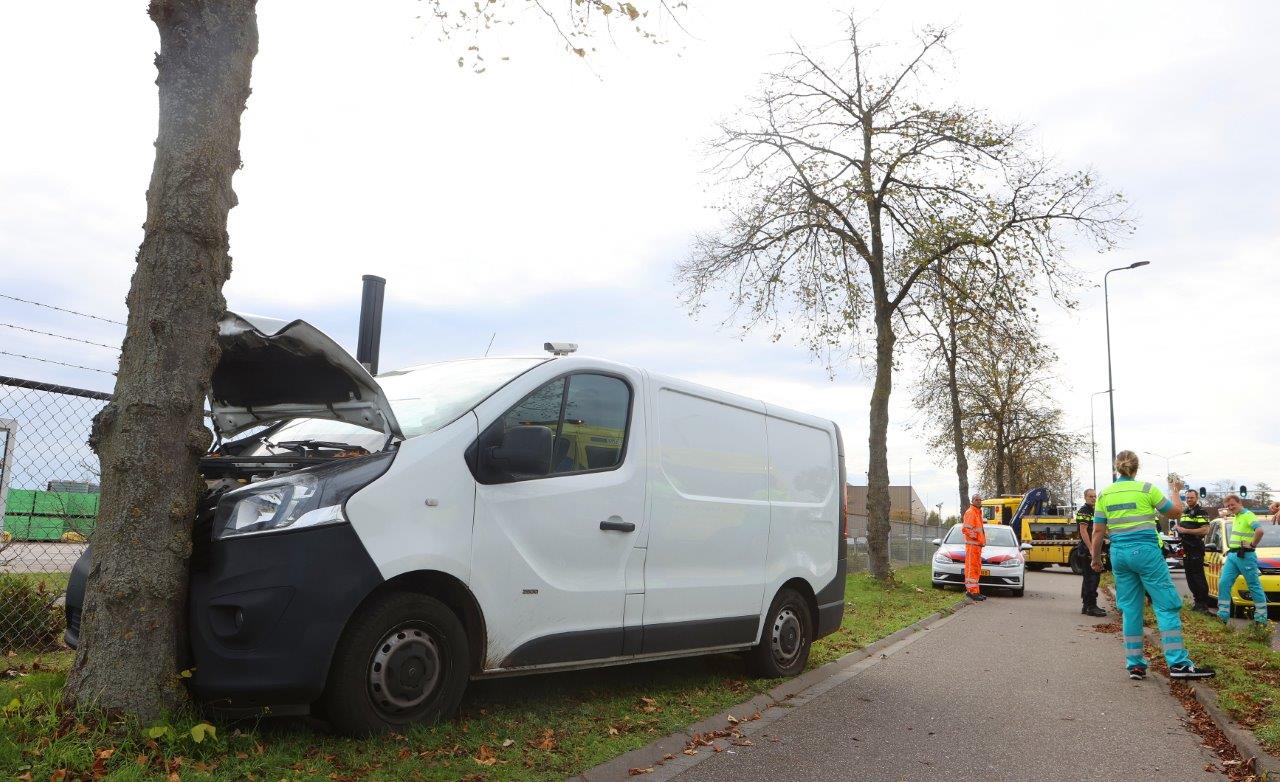 Bestuurder van bestelbus overlijdt na hartaanval, busje eindigt tegen boom