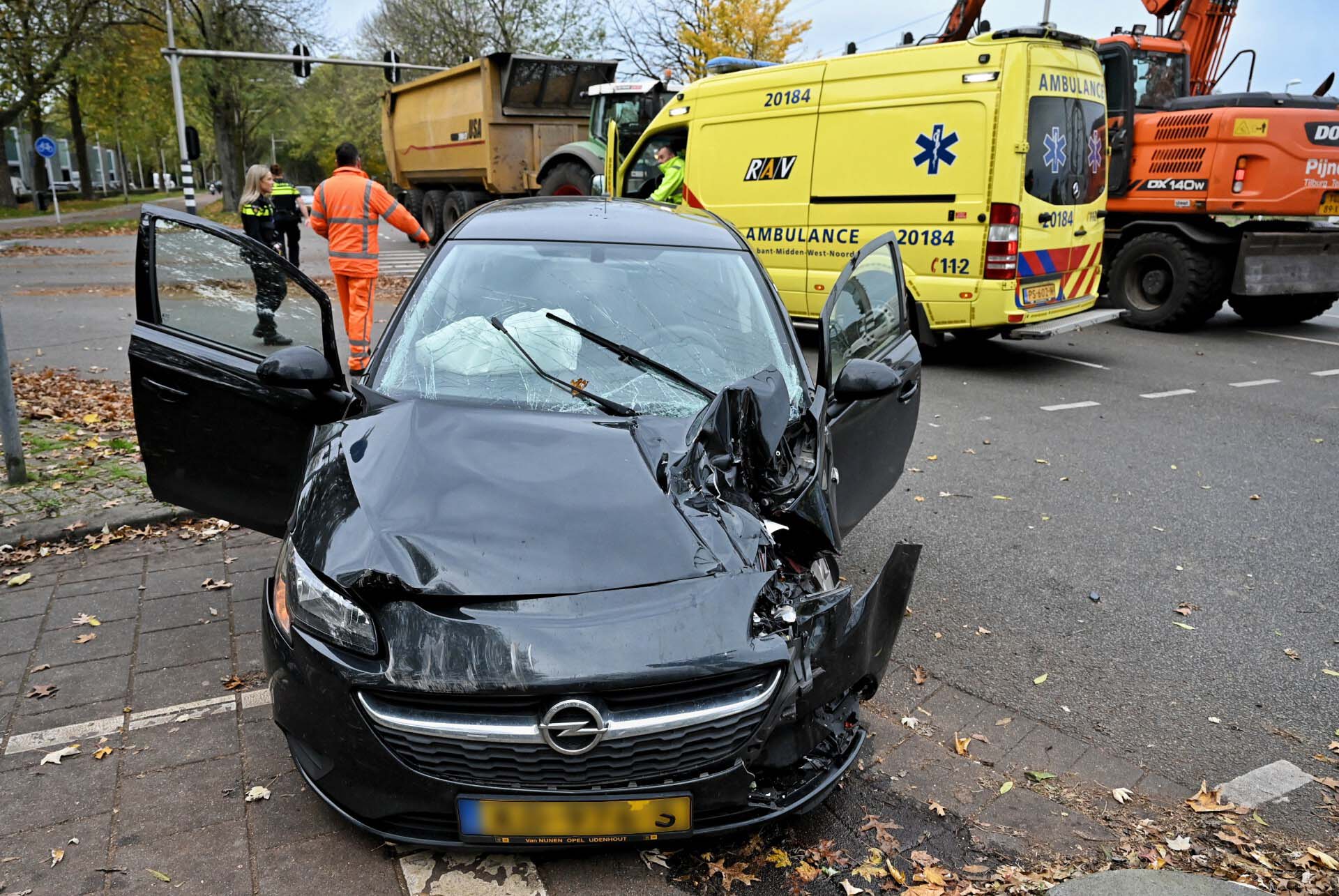 De auto is door een berger opgehaald. Het kruispunt is afgesloten. De politie onderzoekt de zaak.