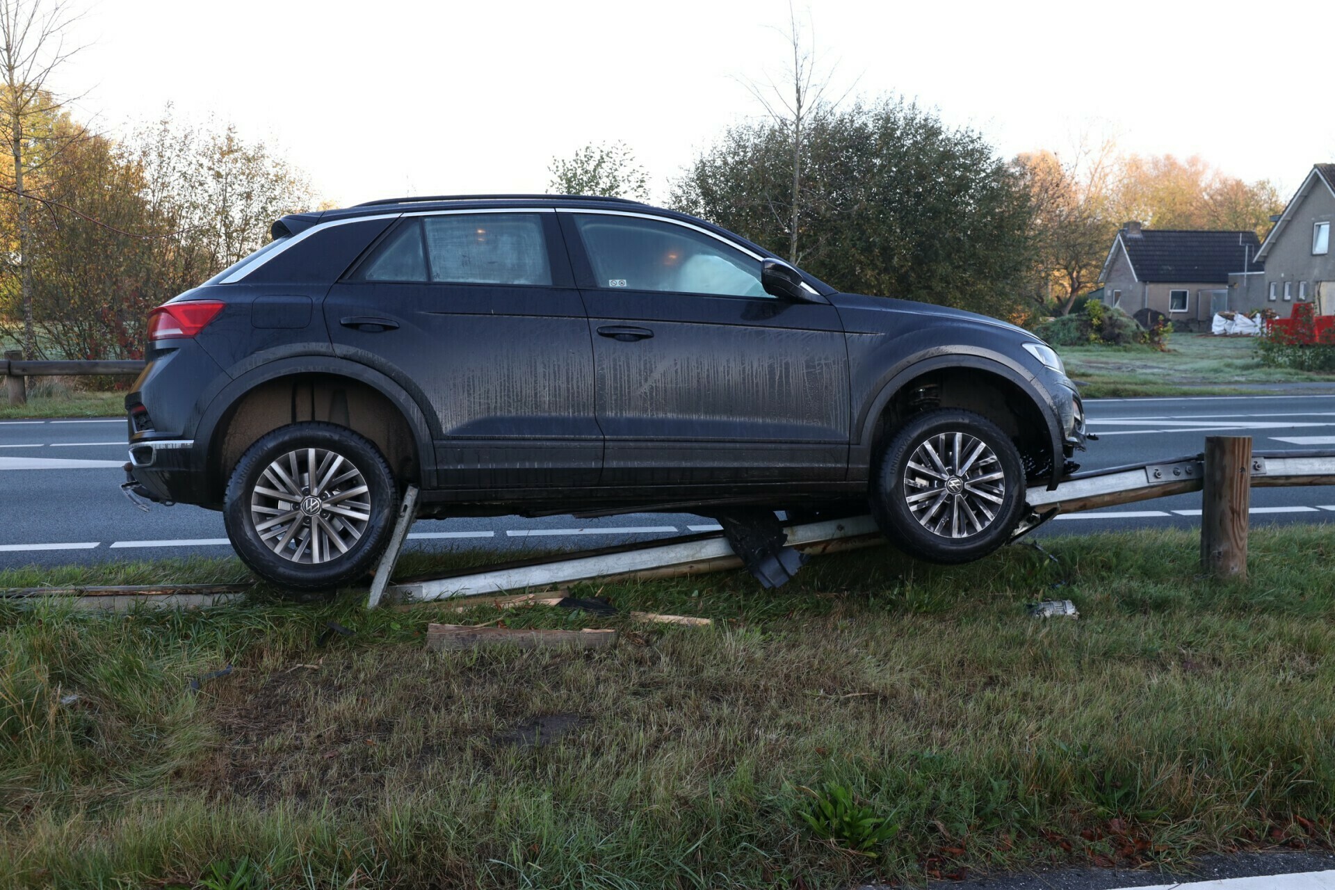 Auto belandt op vangrail na eenzijdig verkeersongeval