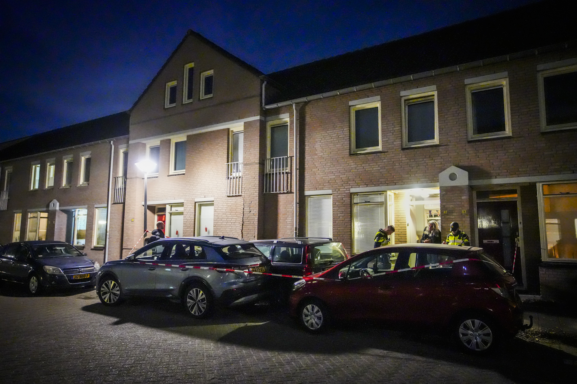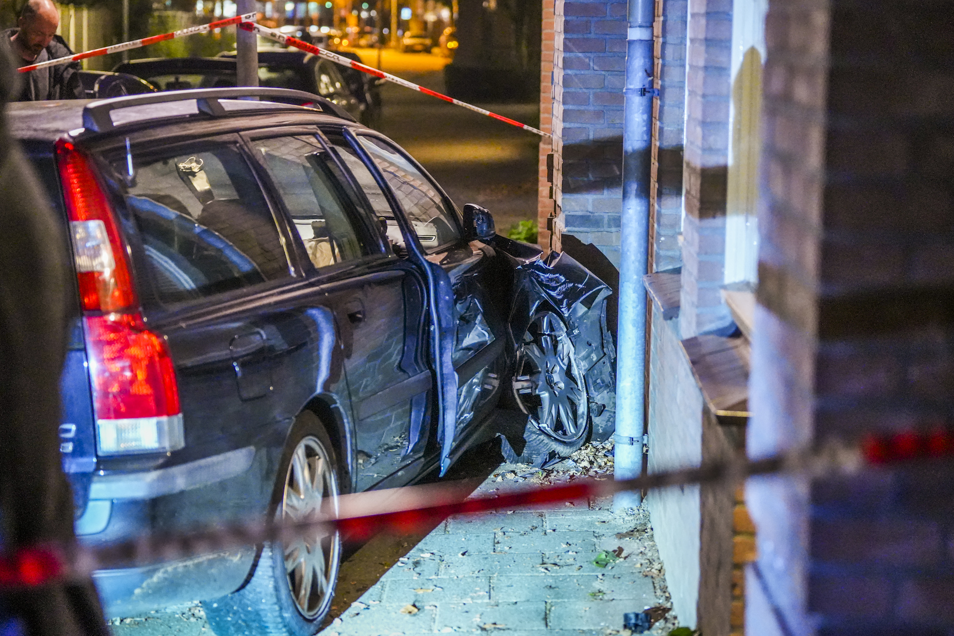 Een automobilist die door de politie werd achtervolgd wilde in de straat een stuk over het voetpad rijden. Toen de auto tussen de gevels van de woningen en twee geparkeerde auto’s door probeerde te rijden, ging het mis. De auto ramde de voorkant van een woning, deze raakte flink beschadigd. Ook de geparkeerde auto’s liepen schade op. De auto -die voor de politie op de vlucht was- zat klem en kon geen kant meer op. De agenten die achter de auto aan zaten wisten twee personen aan te houden.