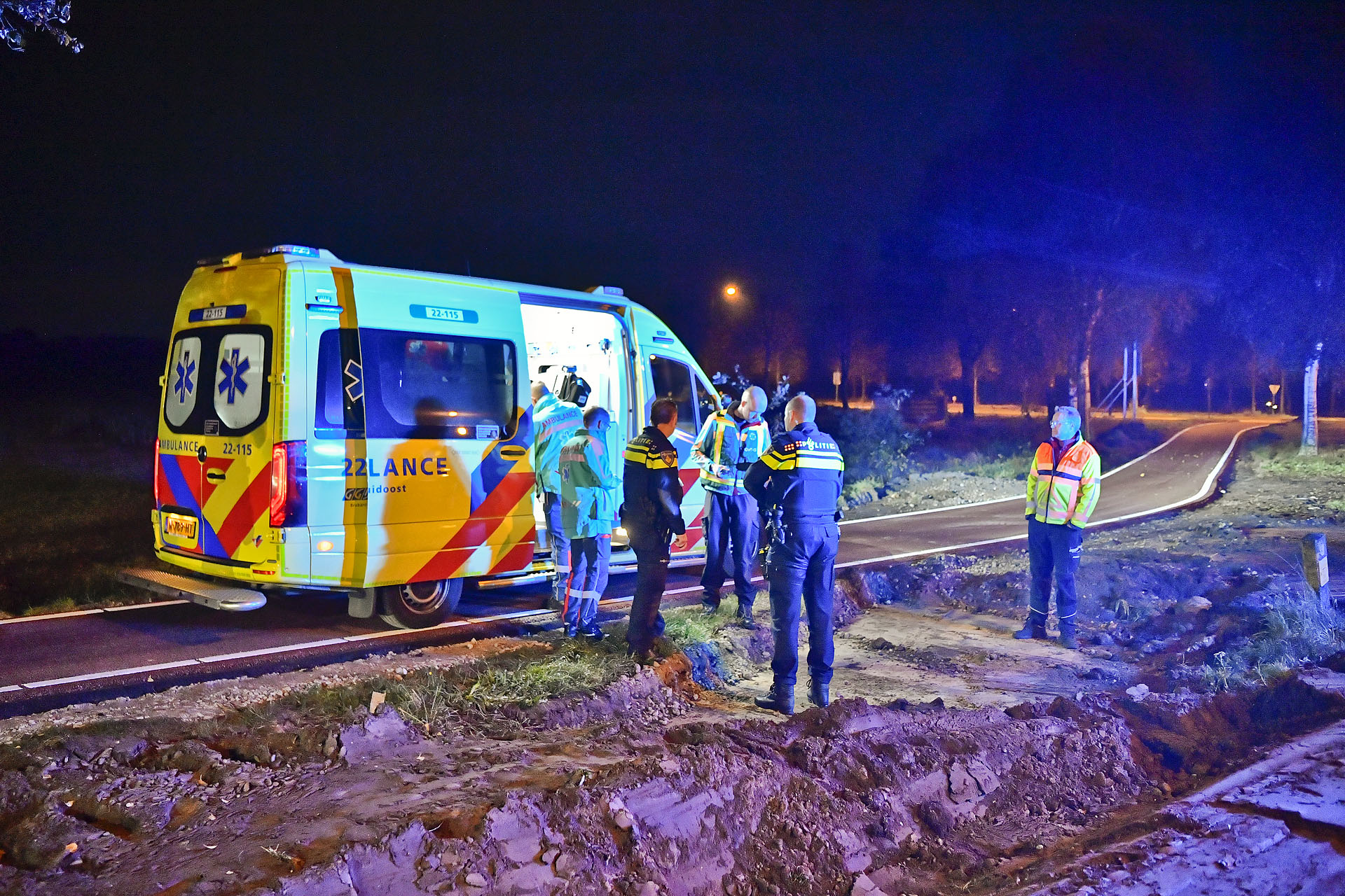 De man is in het losse zand en tegen een boom tot stilstand gekomen. Hij werd aangetroffen door passanten die direct de hulpdiensten belde. Een traumaheli werd opgeroepen voor medische assistentie aan de man.