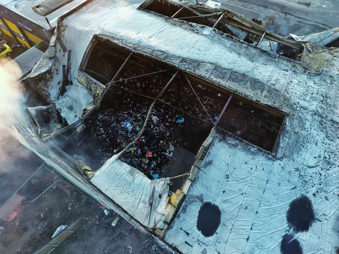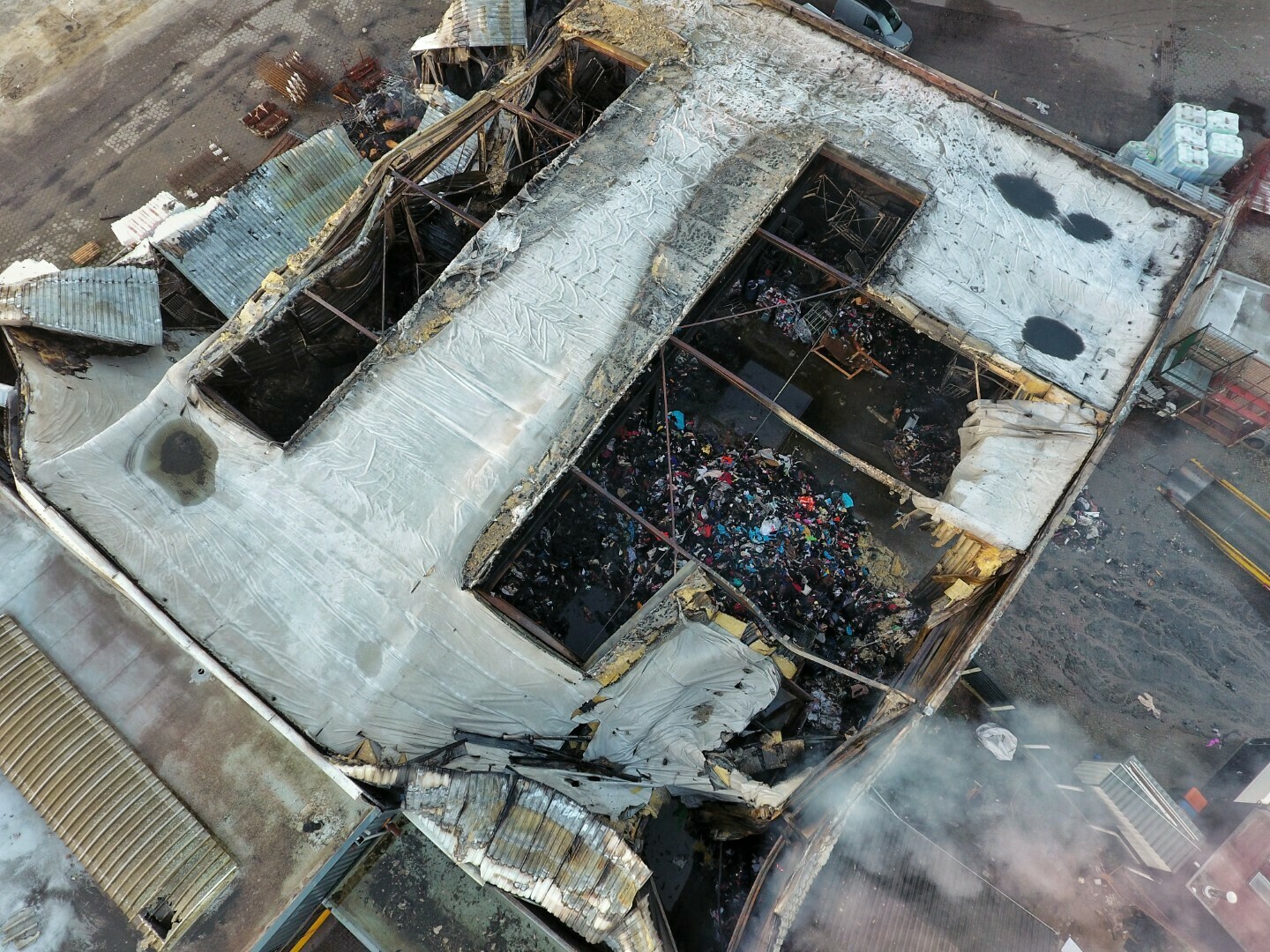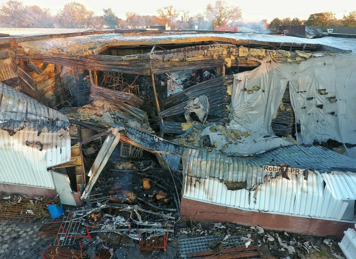 Zondagmiddag brak de brand uit en de rookwolken waren in de wijde omgeving goed zichtbaar. De brandweer is tot diep in de nacht bezig geweest met nablussen. Overdag is de schade goed zichtbaar vanuit de lucht.