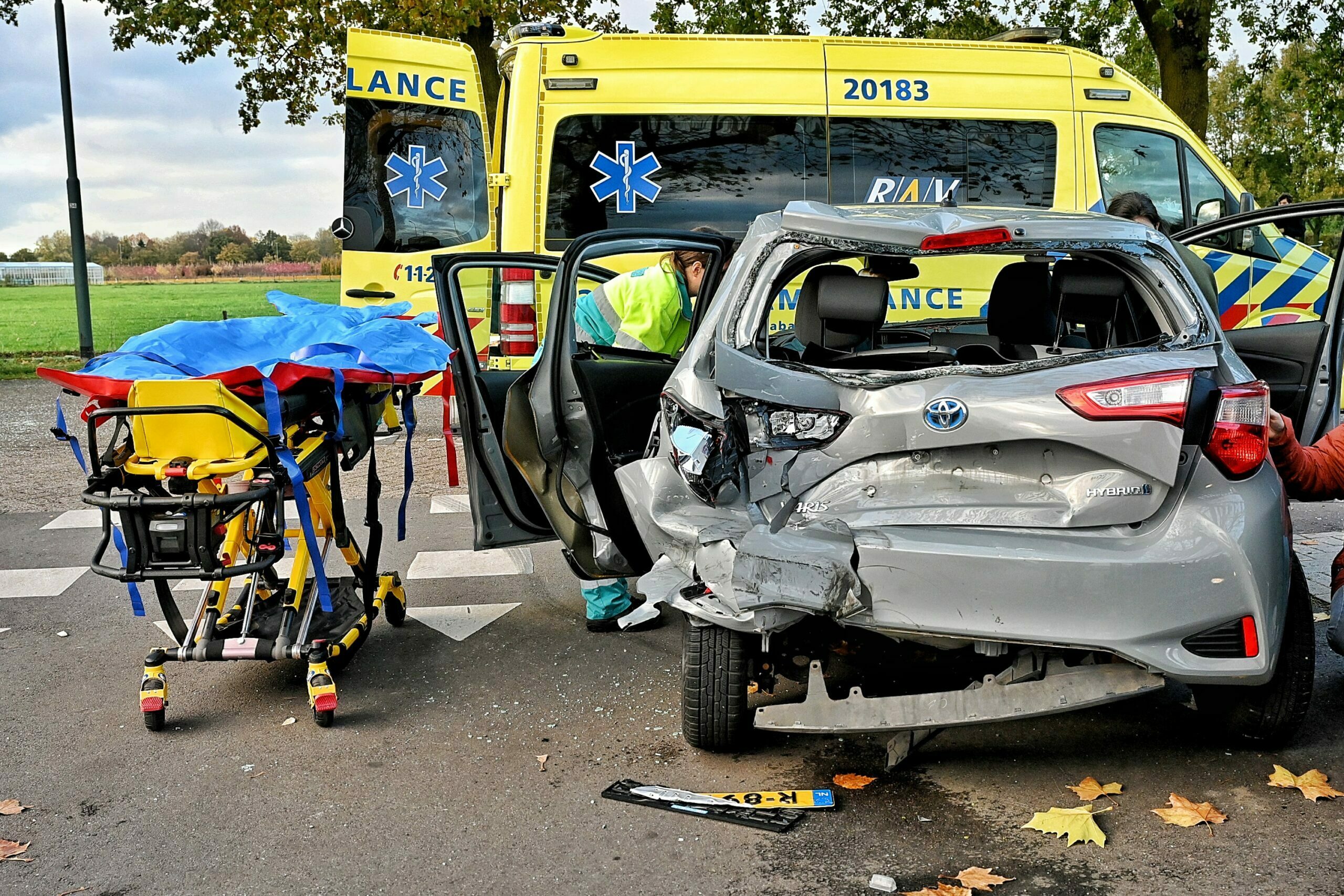 De schade is groot en overal lagen brokstukken. Politie en ambulance zijn ter plaatse geweest. Een vrouw is ter plekke behandeld de andere is met onbekende verwondingen naar het ziekenhuis vervoerd. De bestuurder van de bestelbus, die achterop reed, kwam met de schrik vrij.
