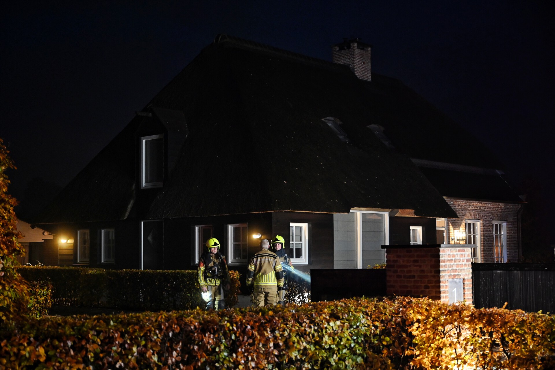 Stichting Salvage komt ter plaatse om de schade te bekijken. Het betrof een vrijstaande villa met rieten dak.