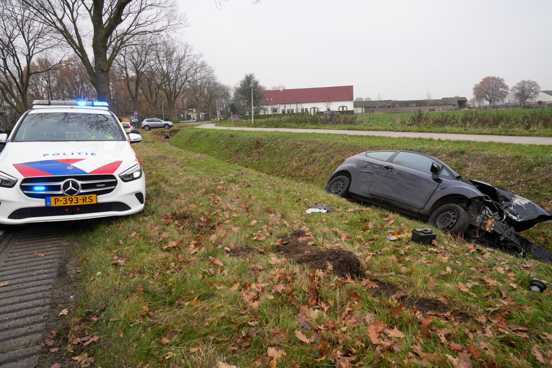 Rond 13:20 uur kwam de melding binnen, waarna de hulpdiensten uitrukten. Ter plekke is een automobilist van de weg geraakt, tegen een boom geknald, en in een sloot tot stilstand te komen. De bestuurder raakte niet gewond bij het ongeval.