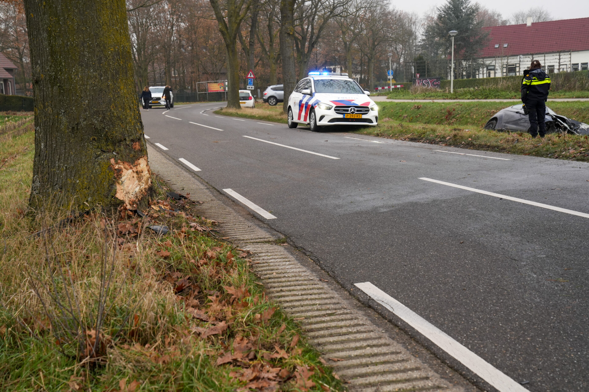 Rond 13:20 uur kwam de melding binnen, waarna de hulpdiensten uitrukten. Ter plekke is een automobilist van de weg geraakt, tegen een boom geknald, en in een sloot tot stilstand te komen. De bestuurder raakte niet gewond bij het ongeval.